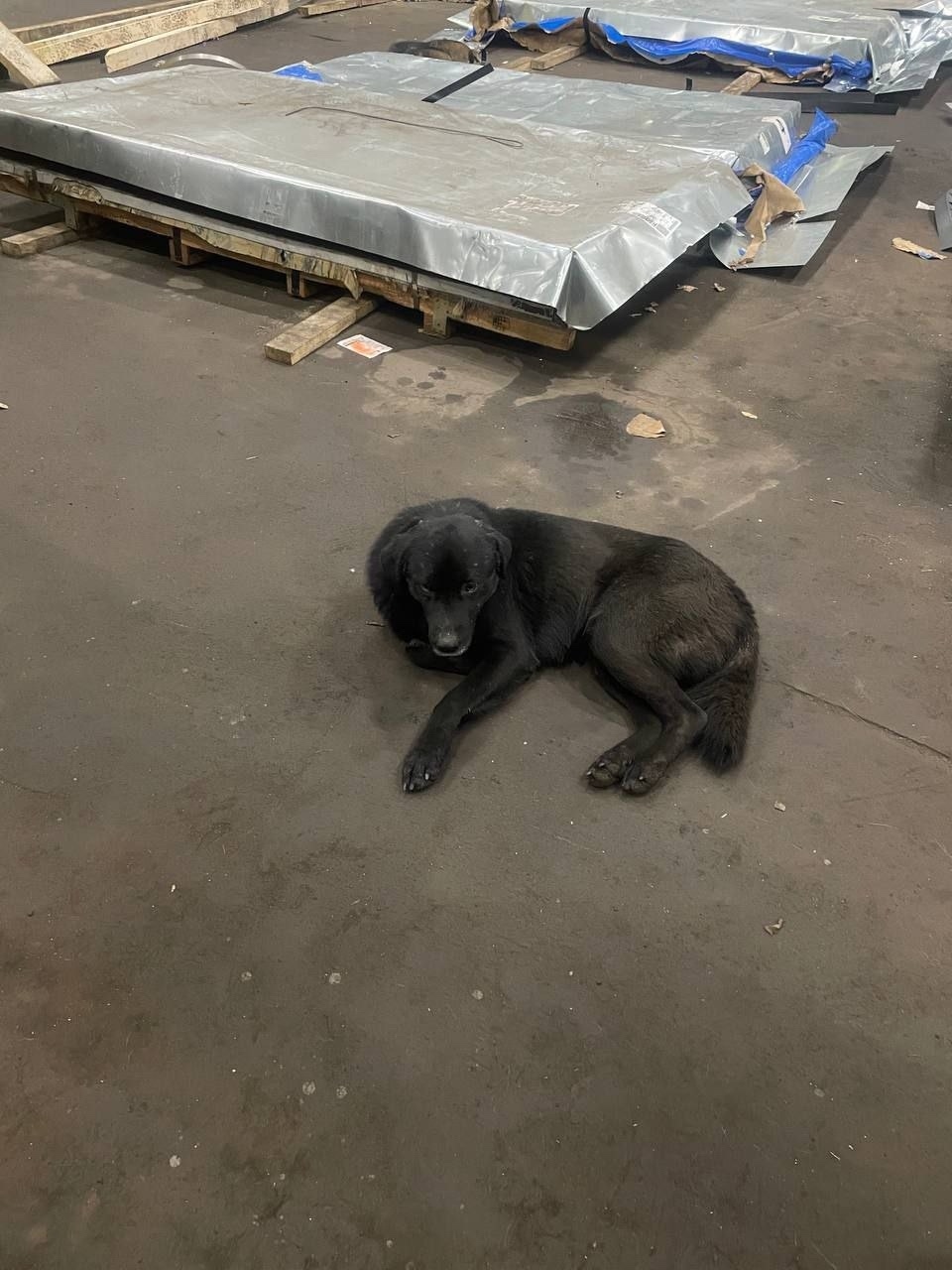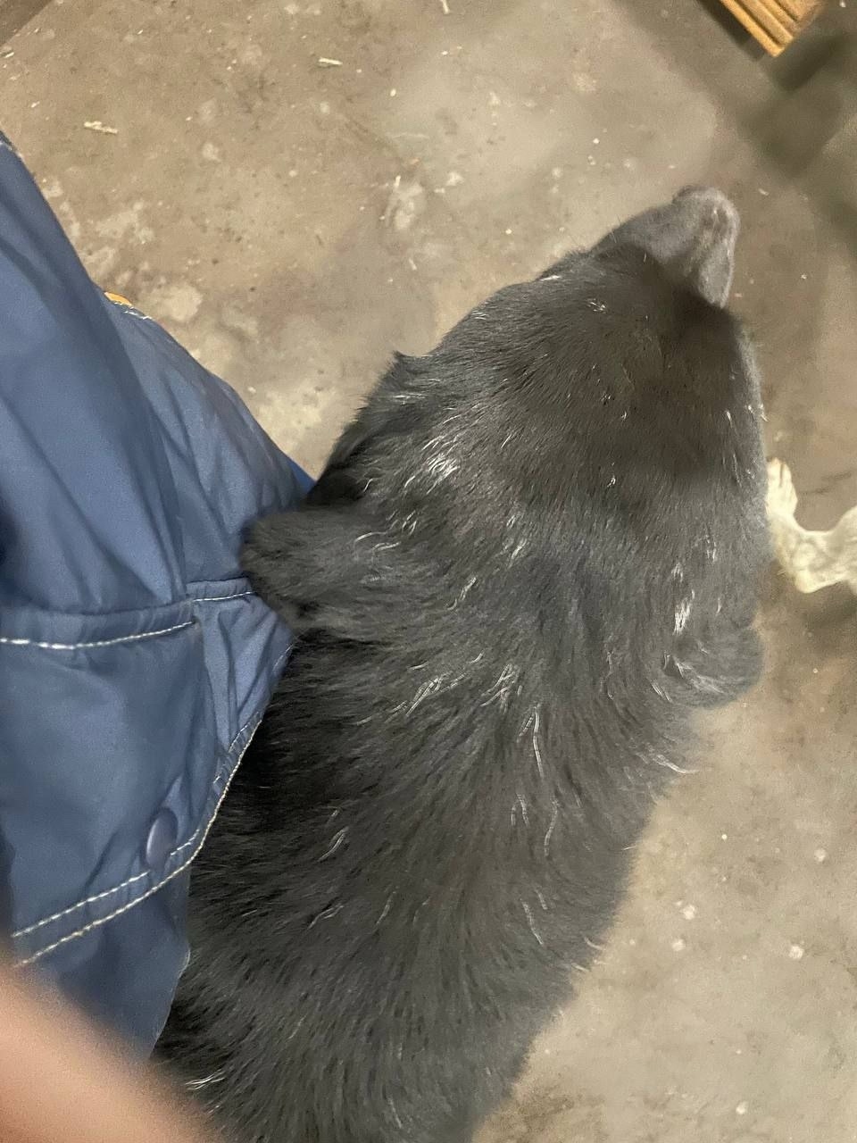 Черный с проседью на голове. Амуниции нет. Умный и знающий команды кобель. Прибился к нашим собакам на предприятии. Проглистовали, но вес пока не набирает. На человека ориентирован, но выборочно.