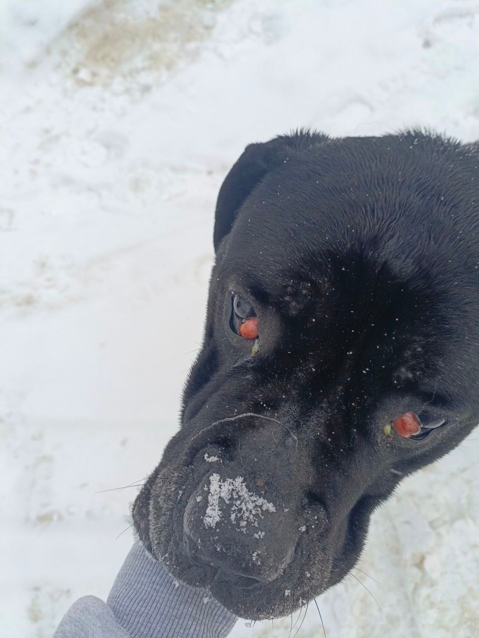 Глаза воспалены , замерз почти, травм не обнаружено вроде.