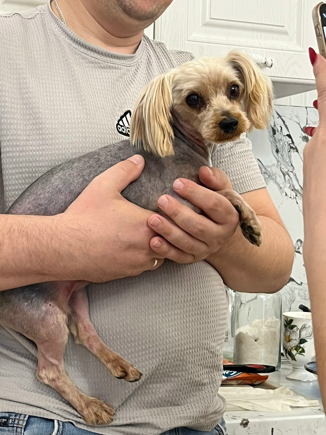 Нашли йорка на улице ночью.Как говорят соседи бегал он уже долгое время.Стало жалко и забрали себе.У нас есть собака,к сожалению они не подружились😔не можем оставить его себе