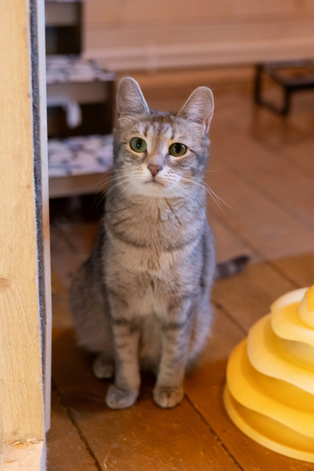 Девчушка энергичная, игривая. Как она радуется каждой новой игрушке, какой детский восторг в её глазках, когда куратор привозит ей новую мышку.