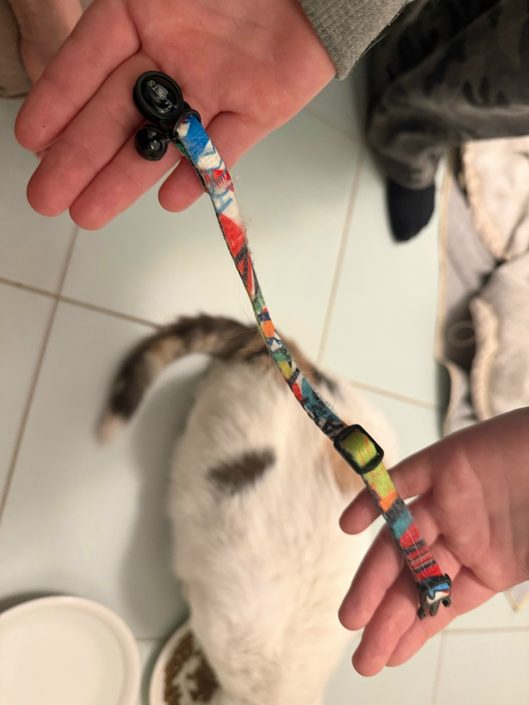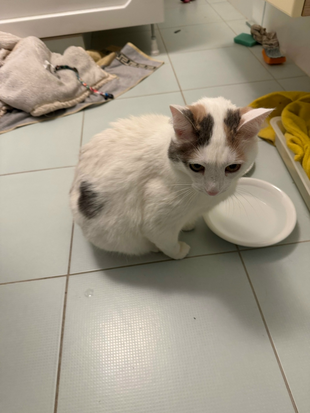 найдена чья то кошка. была найдена на фучике. взброолась на дерево пришлось доставать. просим отозваться хозяев. аудя по ошейнику она чья та.