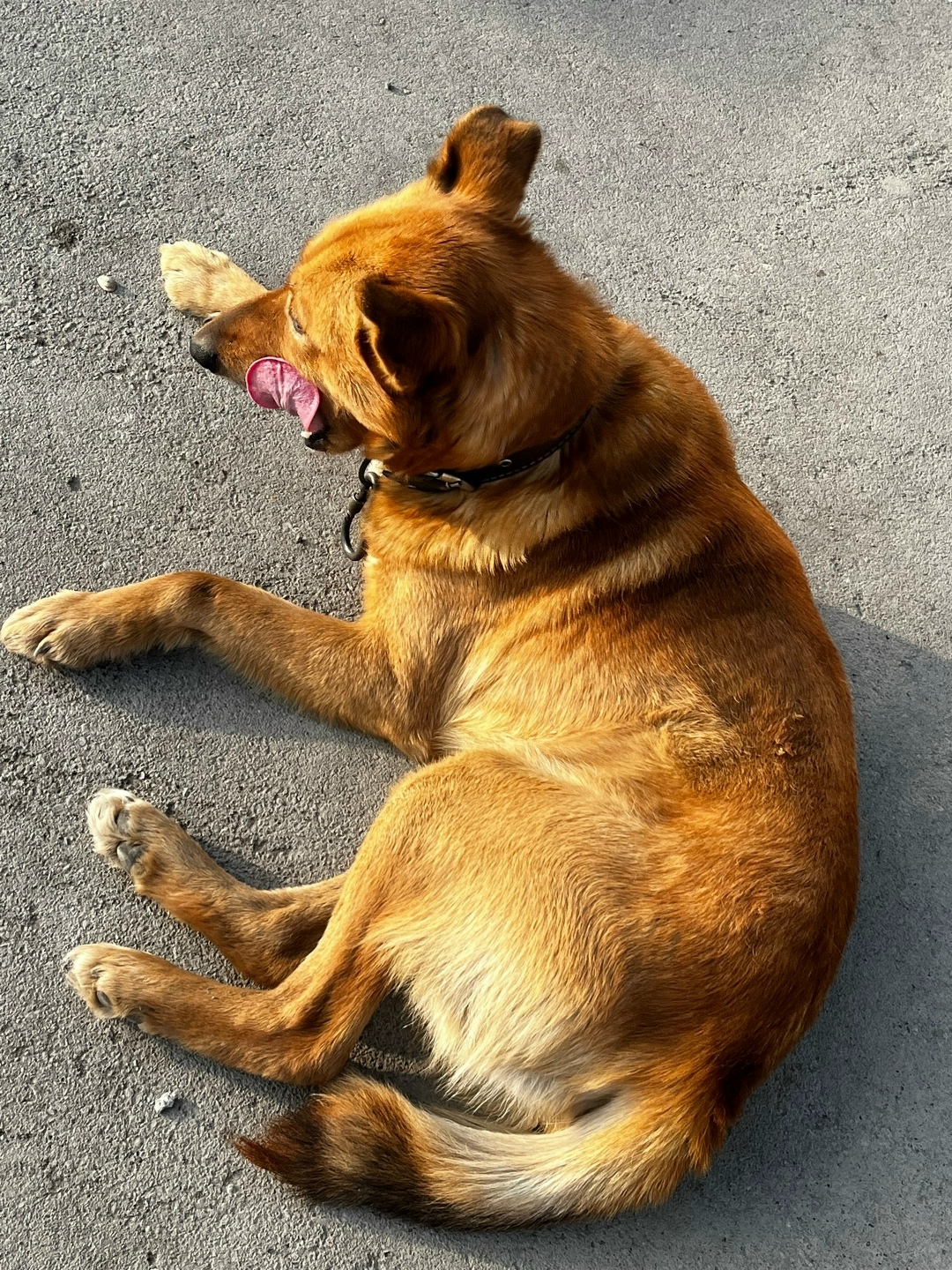 Рыжая собака в Салават Купере у Вкусно и точка, может кто потерял. С ошейником
