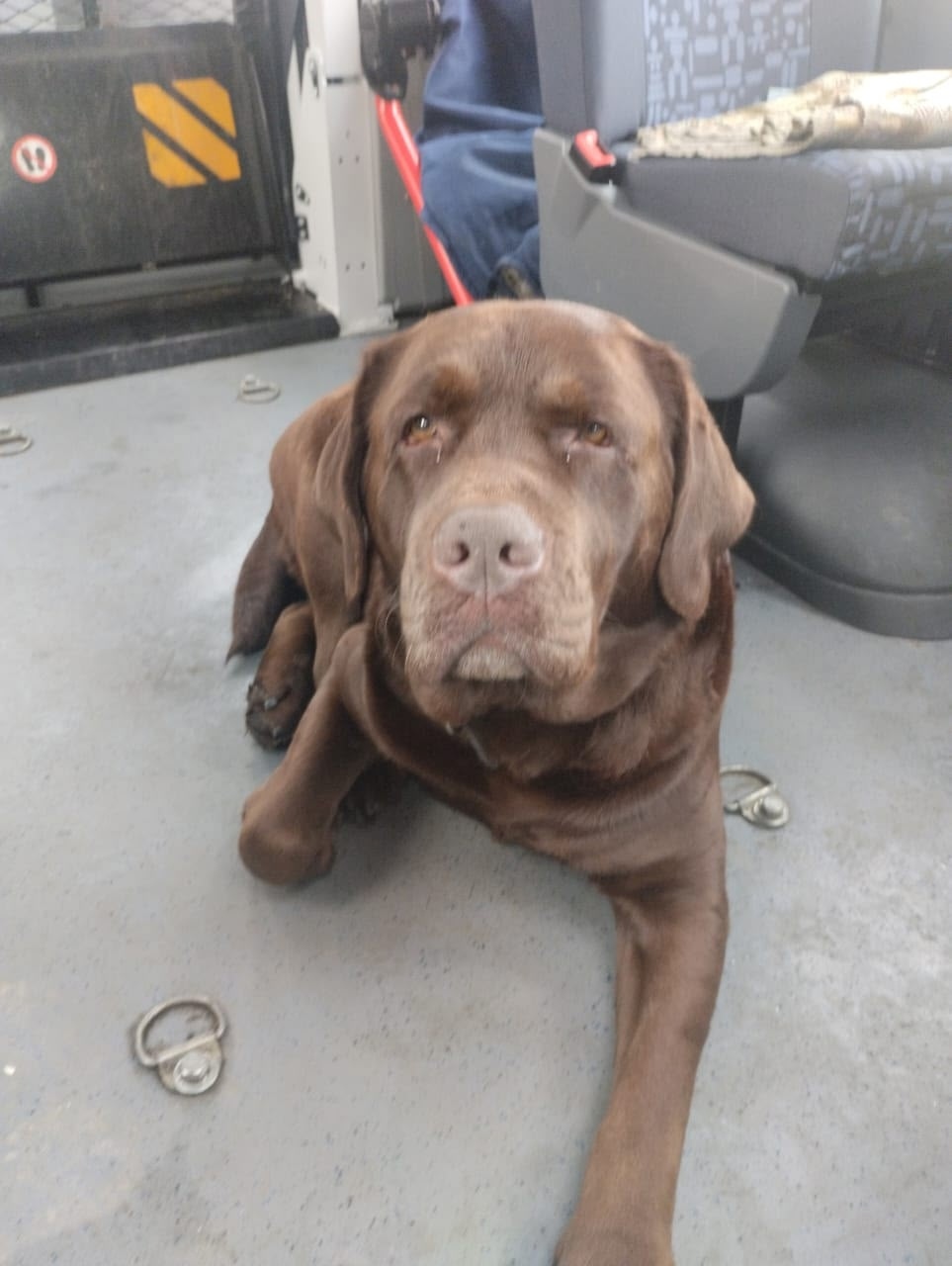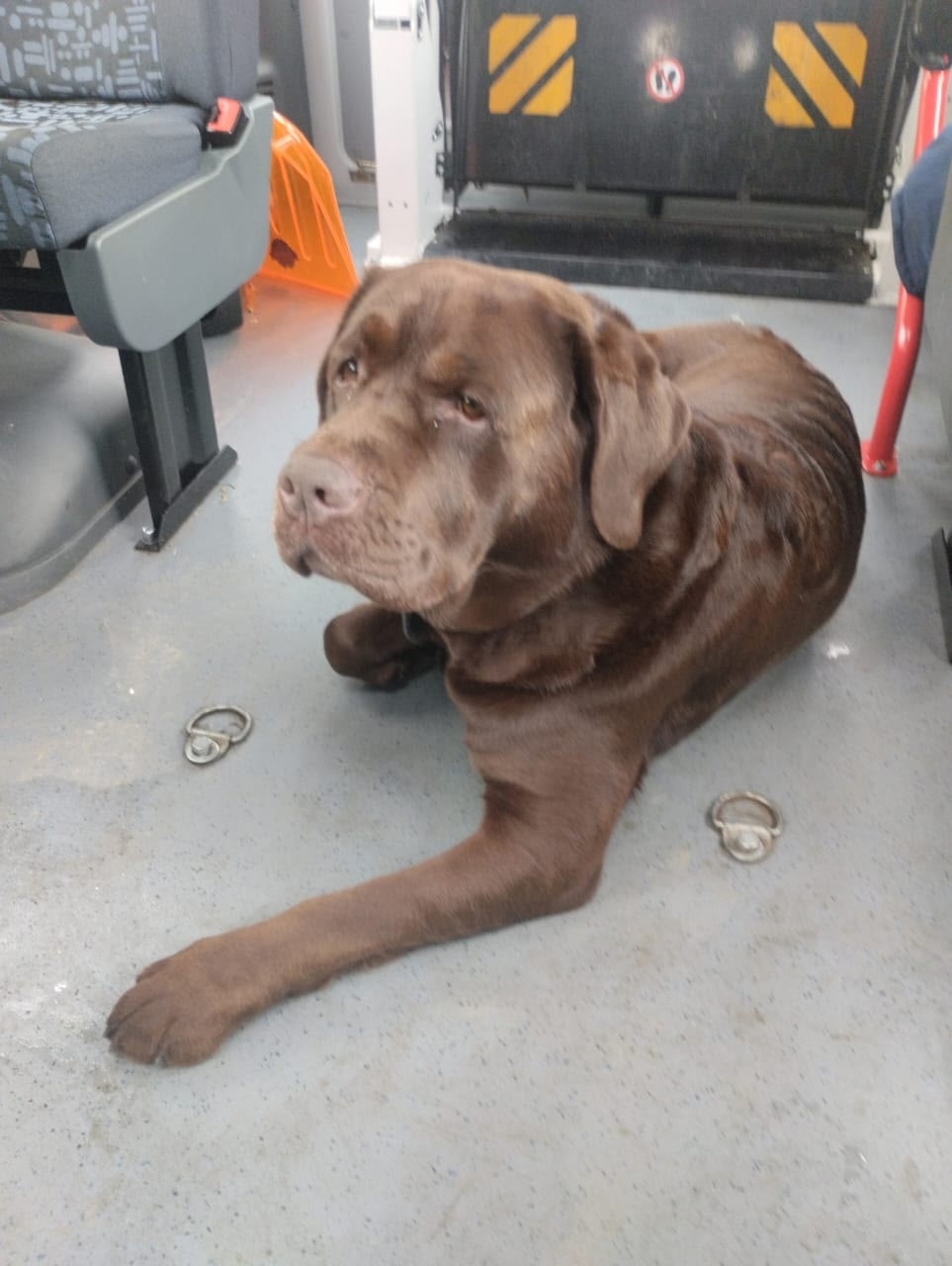 Найден шоколадный лабрадор. Возле речного техникума. Временно придержали на 2 часа , срочно надо найти хозяина.