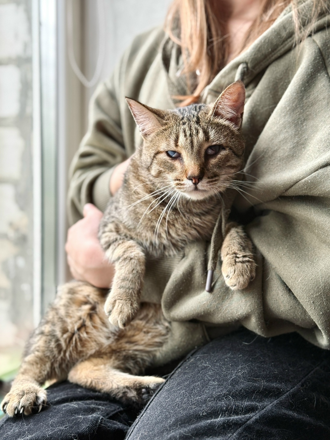 Потерял зрение в детстве из -за болезни. Нашли малыша на улице. Котенок долго проходил лечение. Его спасение - это огромное чудо. Вселенная улыбнулась ему и я очень хочу, чтобы это произошло снова, ведь Джеку нужен дом 🙏