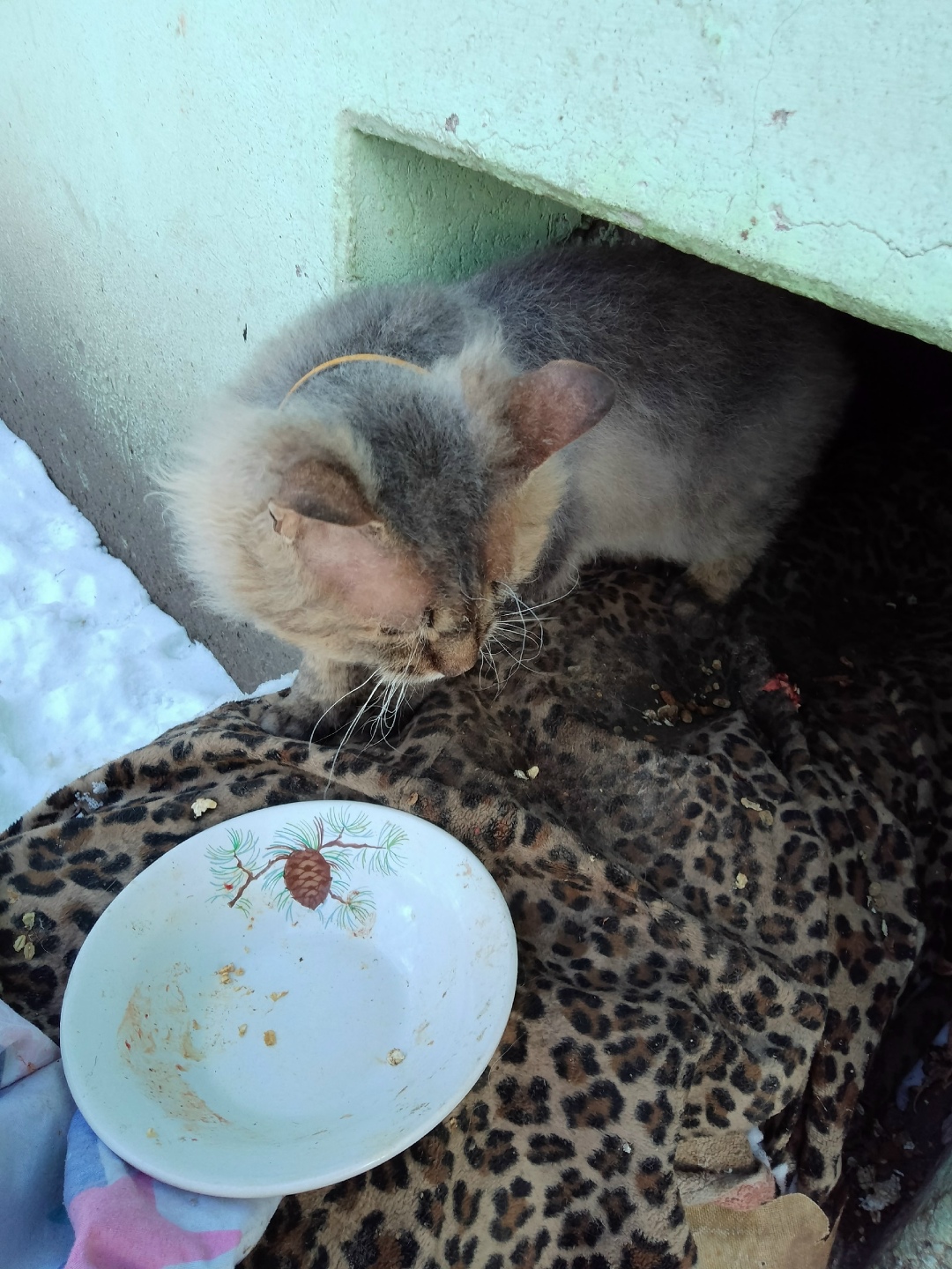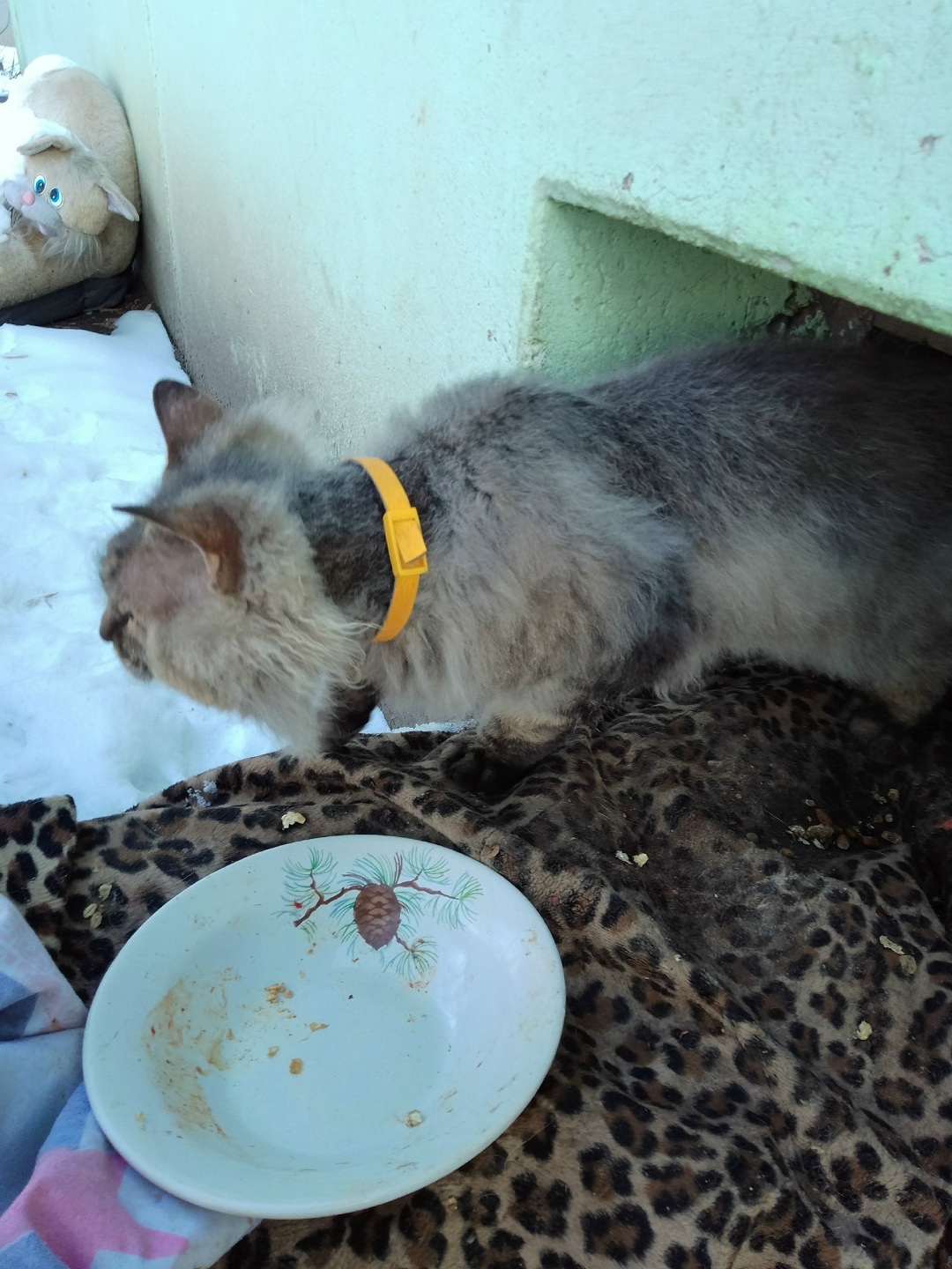 Кто потерял кота в ошейнике? Уже неделю сидит на улице