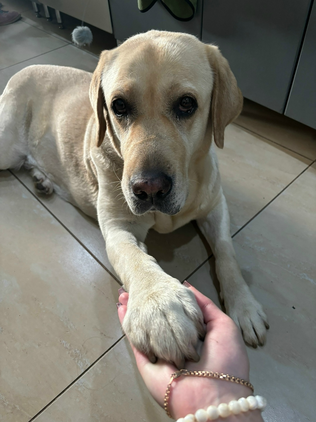 - кличка: Перси (отзывается на Персика), палевый лабрадор, есть красное пятнышко на правом ухе, так как аллергик. Худощава из-за проблем с кормом в последнее время