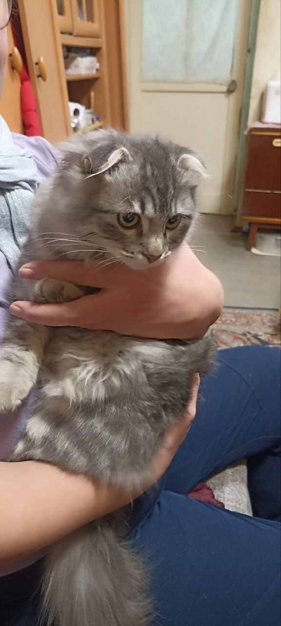Нашли вот такого потеряшку. Кот. Очень ручной, напуганный, кидался под машины.