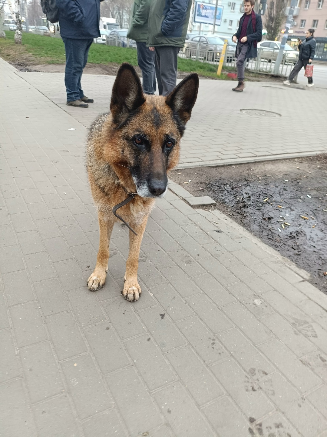 Немецкая овчарка у строительного института! Пёс растерян, адресника нет.
