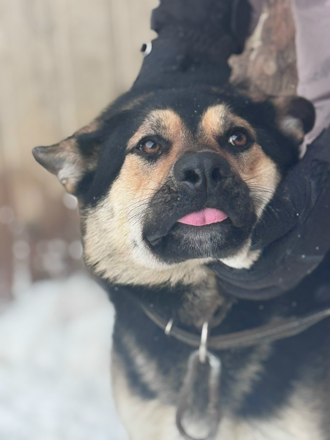 Ему около двух лет. Это возраст, когда мир должен быть большим, вкусным и полным приключений. Но мир Брюса до недавнего времени умещался в ящик из ДСП в глухом лесу. Его нашли там привязанным на цепь. Зачем — загадка. Охранять шишки? Грибников? Или просто вывезли и забыли, как старую покрышку. Как он там выживал — непонятно. Но то, что он не озлобился, не сломался и не разучился радоваться — настоящее чудо.