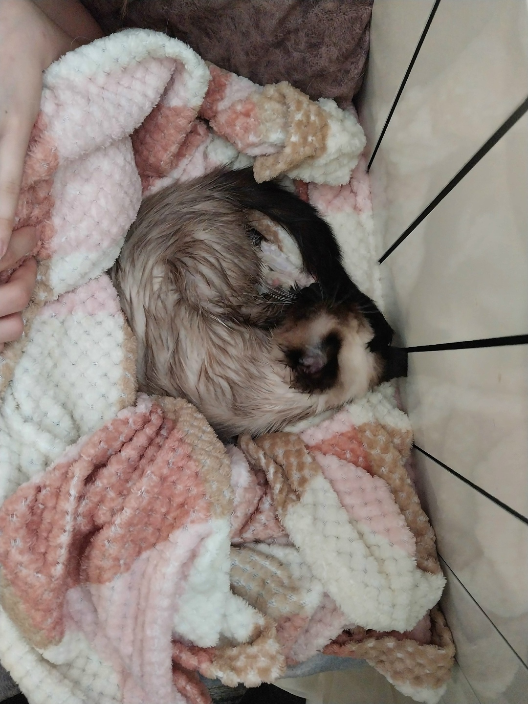 Сегодня утром 31.12.2025 нашли котёнка под машиной, замершего, совсем обессиленного. Помогите пристроить пожалуйста. 89232743385