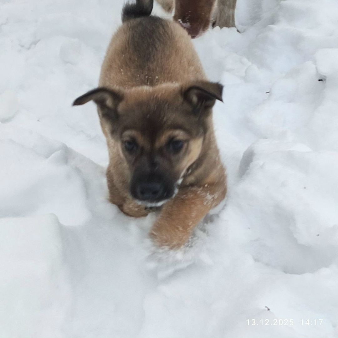 Особенный малыш найден в пригороде Железногорска, будет средним, мордашака серьезная!! Ждет с нетерпением свой первый ошейник и поводок!