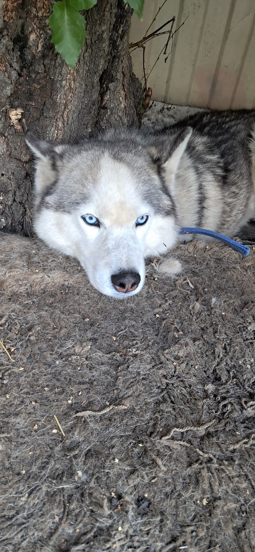 Хаска. Живёт в Покровке, бегагать может далеко.