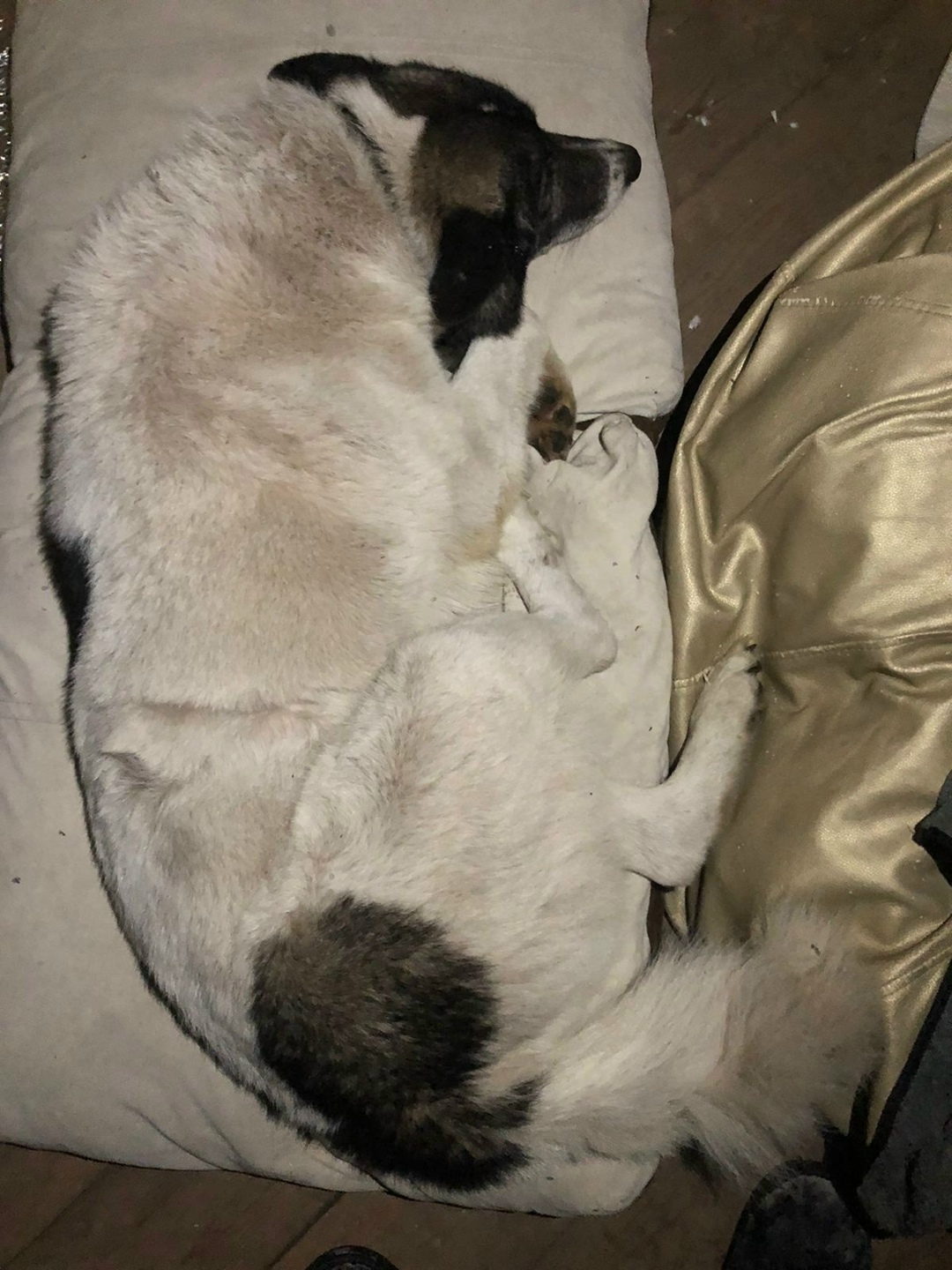 Здравствуйте в СНТ Русич нашли собаку ( кобель) за забором лежал запутанный в кабеле , лапа сломана! Мы его перенесли в баню на матрас накрыли куртками, баню подтопили!Хозяин найдись!!