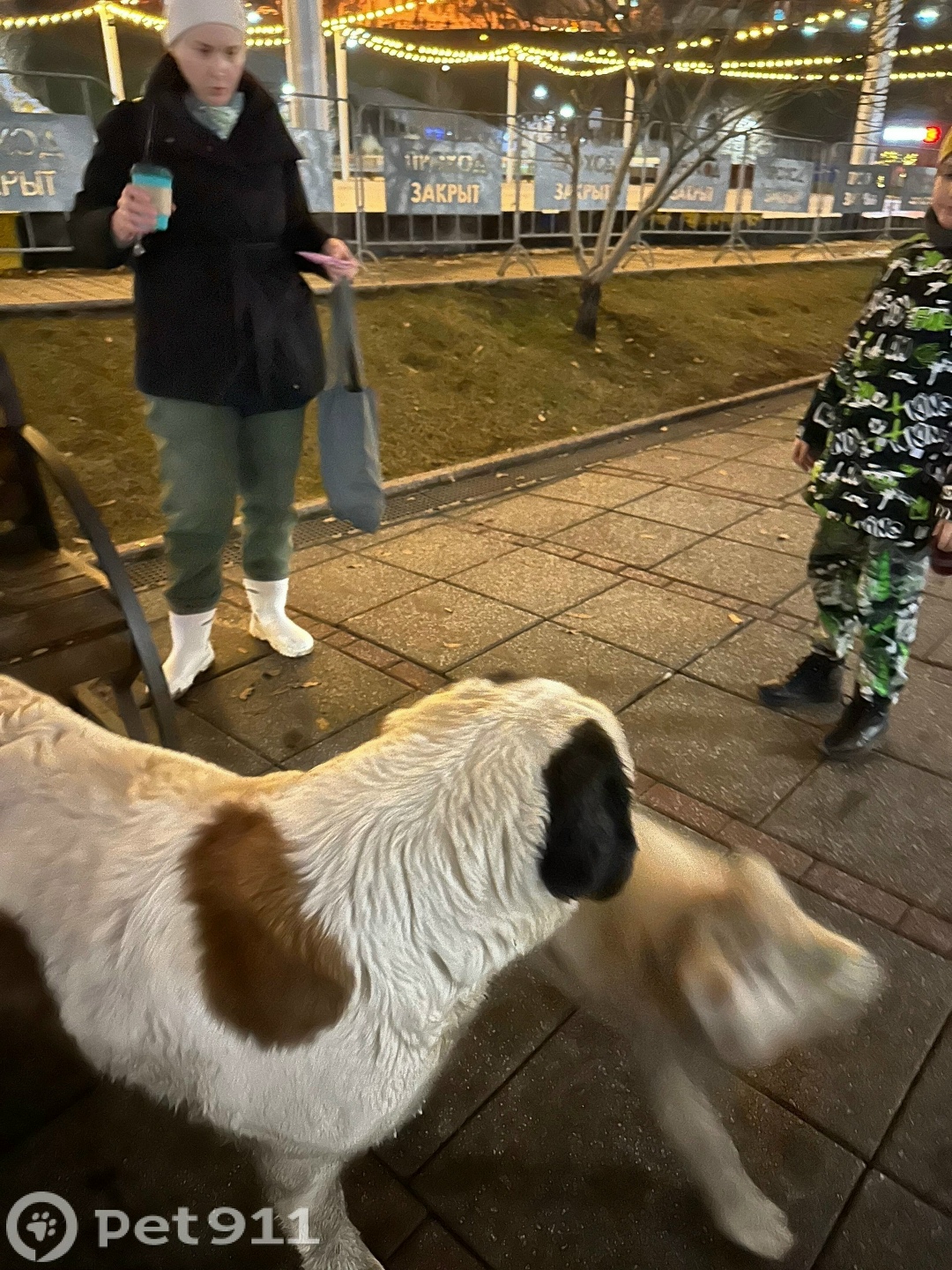 Две собаки. Сенбернар и вторая похожа на самоеда. Бегали по набережной