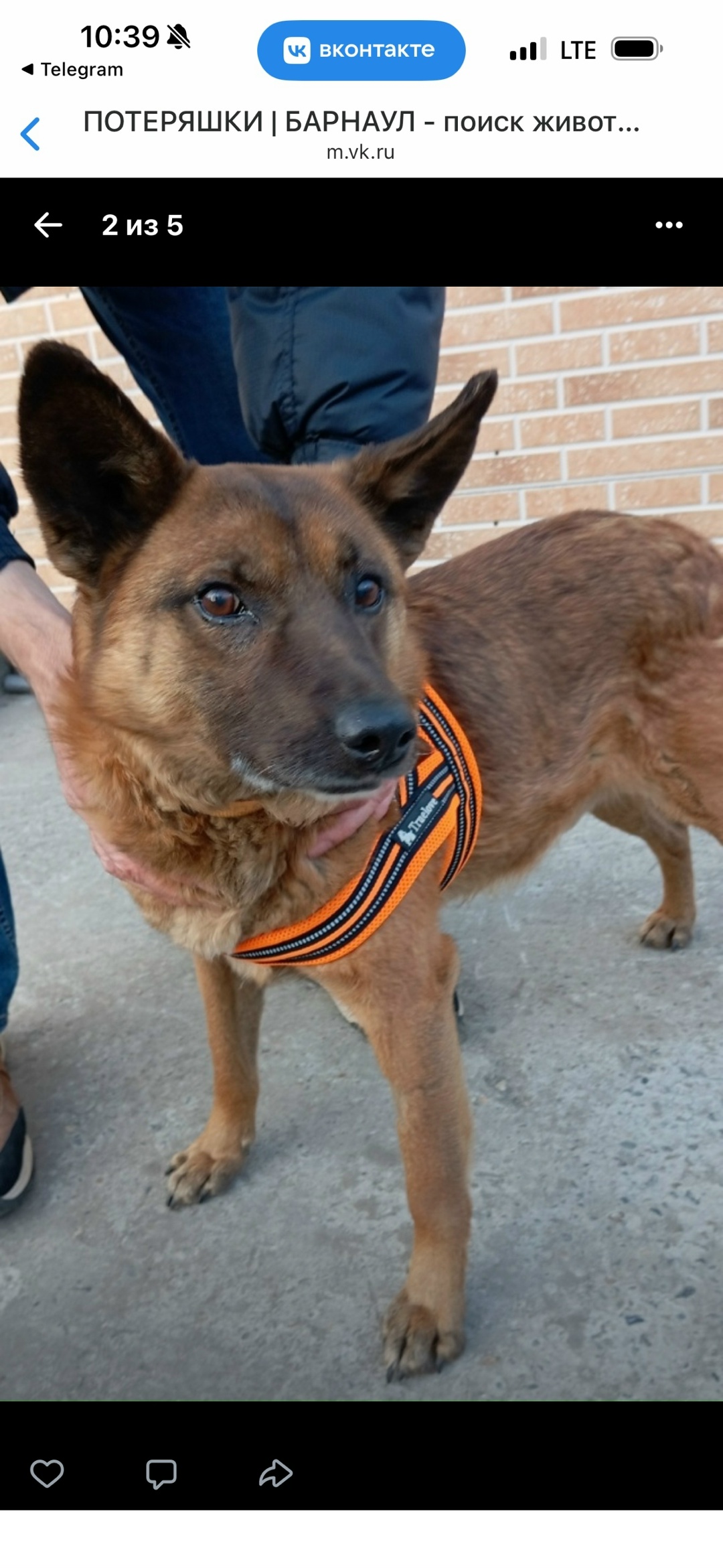 Подобрали потеряшку. (В районе санатория Барнаульский и ЖК Вышка) Пёсик спокойный и добрый. Помесь малинуа и дворняжки.