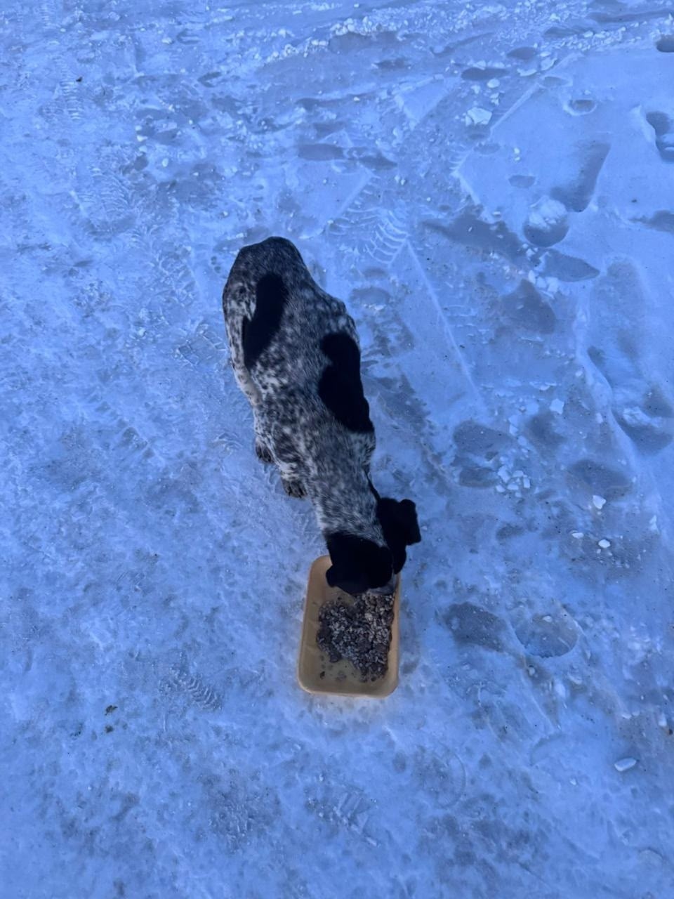 Шипуново. Очень голодный щенок.