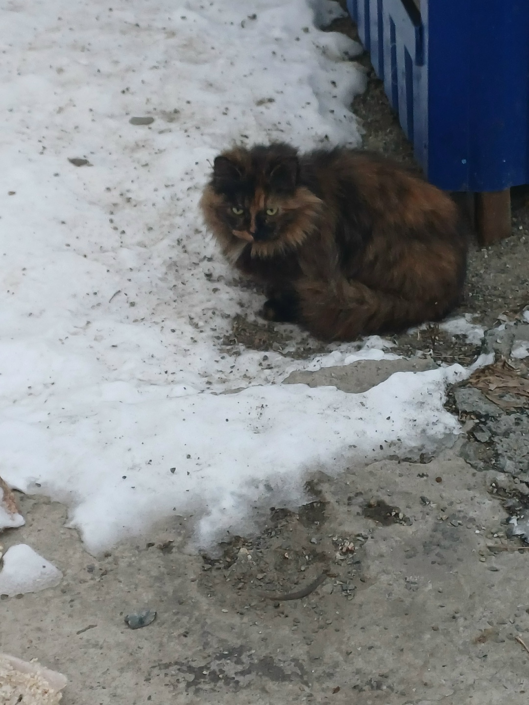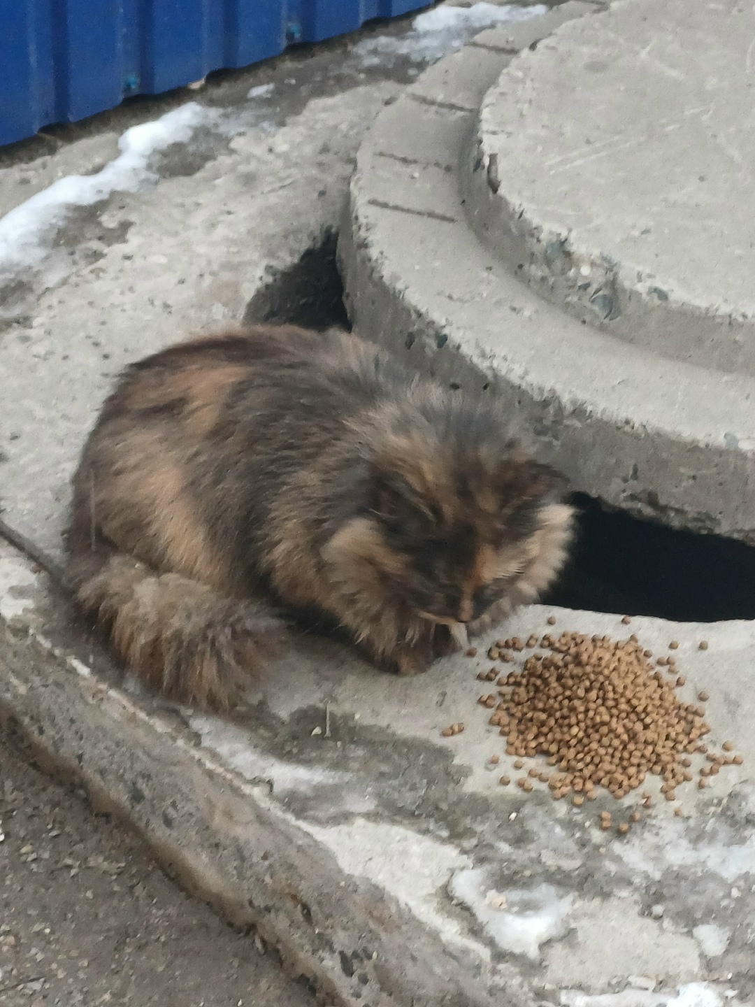 Вот такие две красотки появились осенью и живут в колодце и под ангаром . В районе ул. Профинтерна. Раньше боялись, сечас выходят и ждут, когда я им принесу еду. Еще третья приходит, но реже. Может случится новогоднее чудо, и кто то захочет забрать или в приют для пристроя.