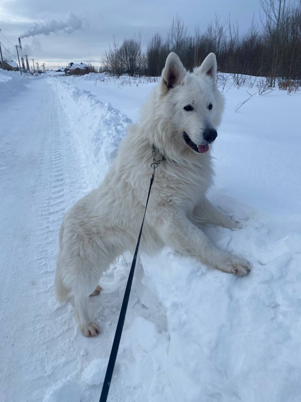 Порода: Белая Швейцарская Овчарка , Карие глаза, очень пушистый, был в коричневом ошейнике .