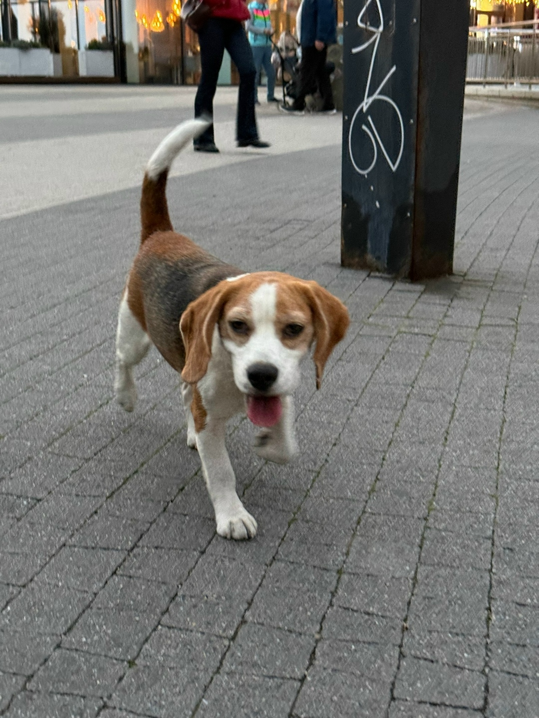Щенок бигля, девочка, нашла ее на прогулке, теперь ищем хозяина, старого или нового