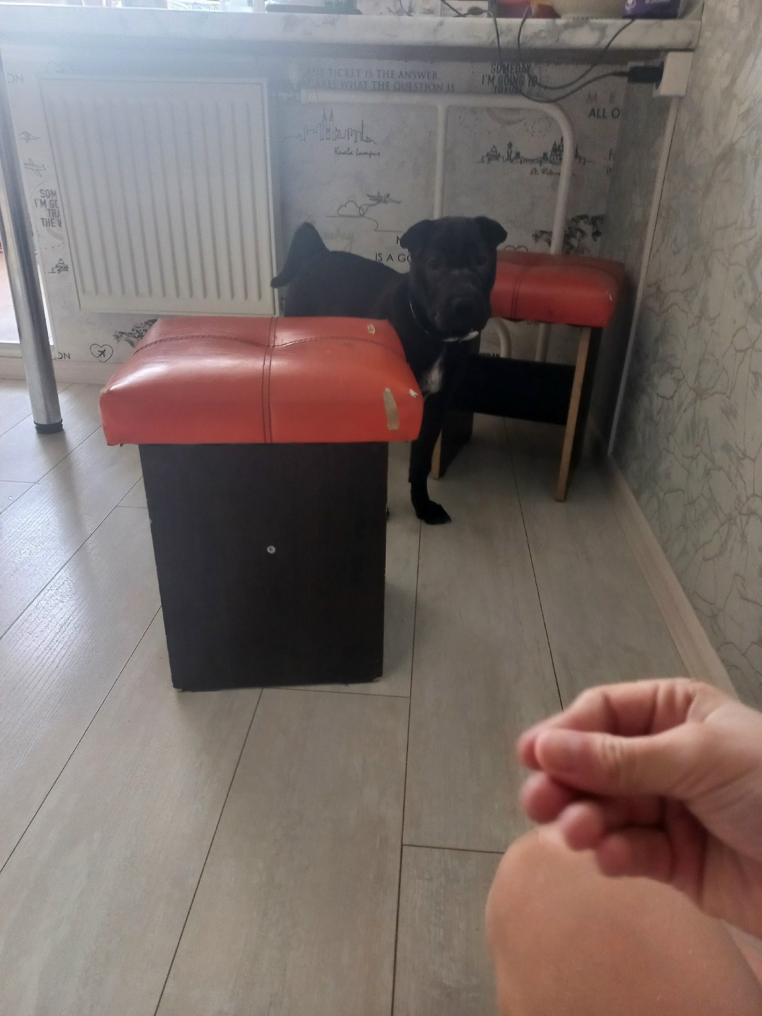 Найдена собака забежала с подъезда, хозяина отзовись пожалуйста??? видно что собака домашняя с ошейником
