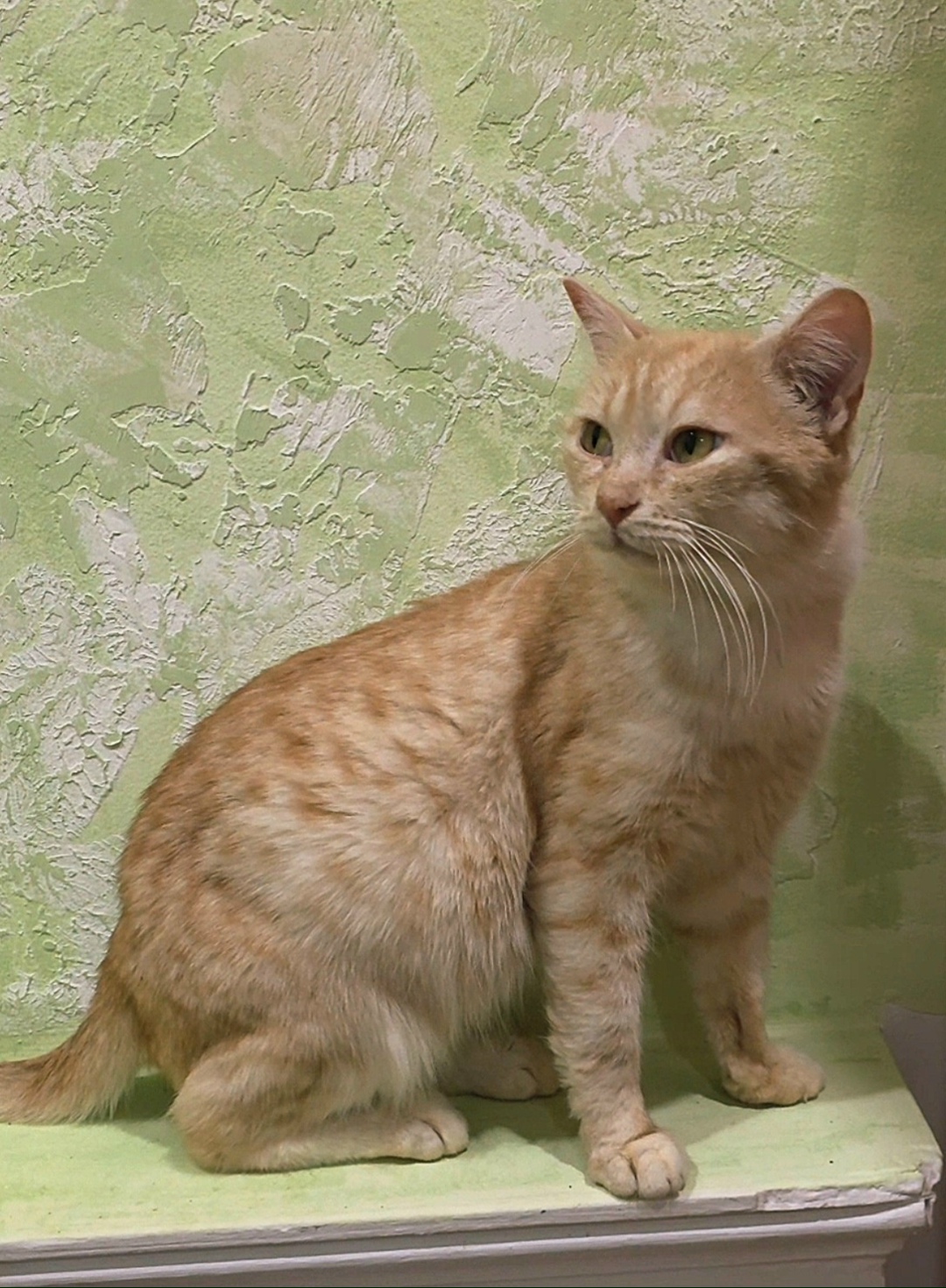 По характеру этот абрикосик с рыжими пятнышками очень спокойный, степенный и ненавязчивый котэ. Но и от ласки конечно не отказывается - любит лежать на ручках и тихонечко петь свои замурчательные песенки🤗