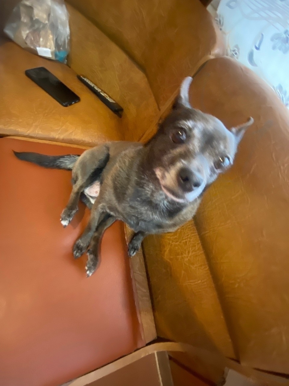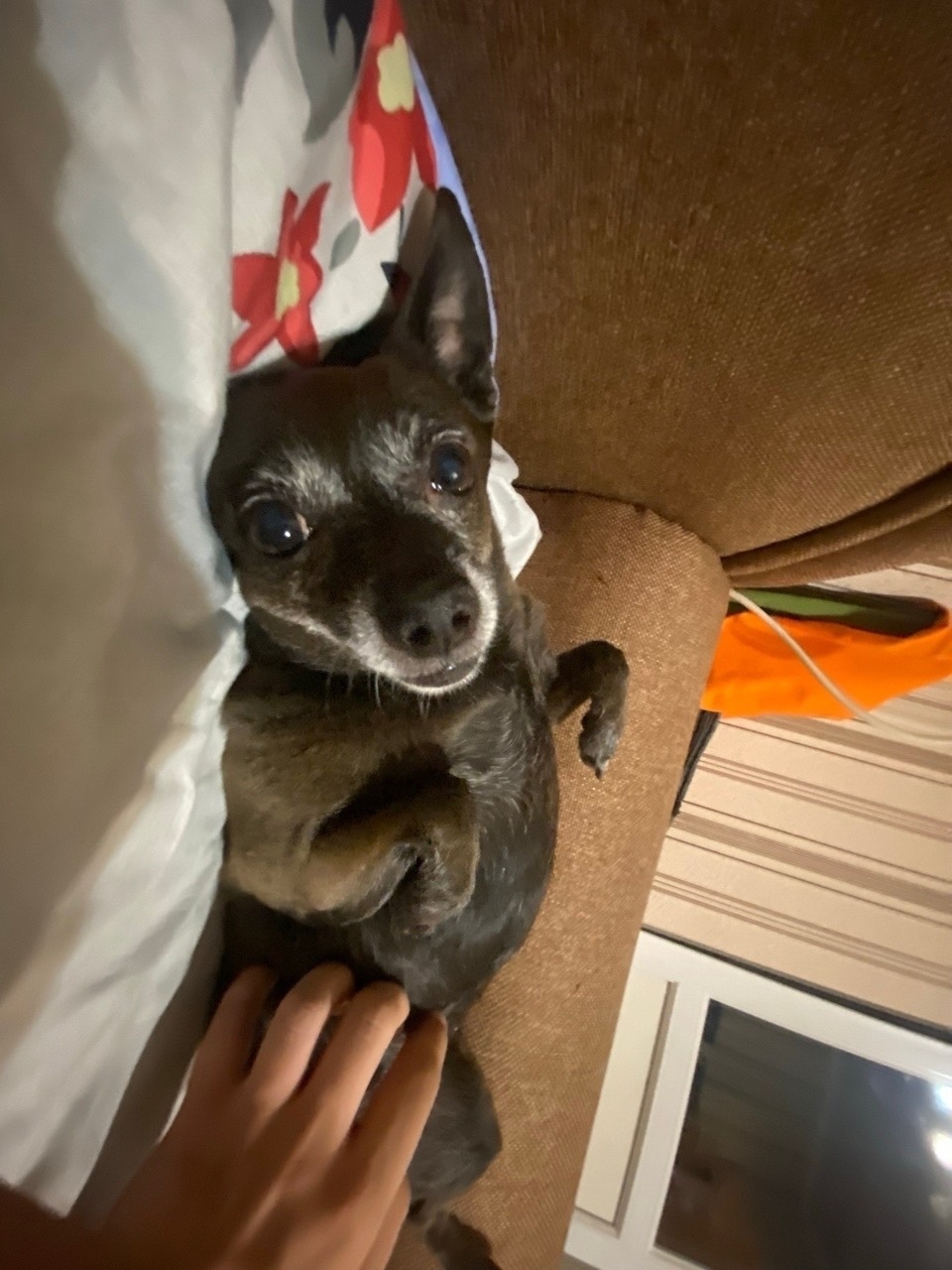 Зовут Маня, очень боится и постоянно лает!