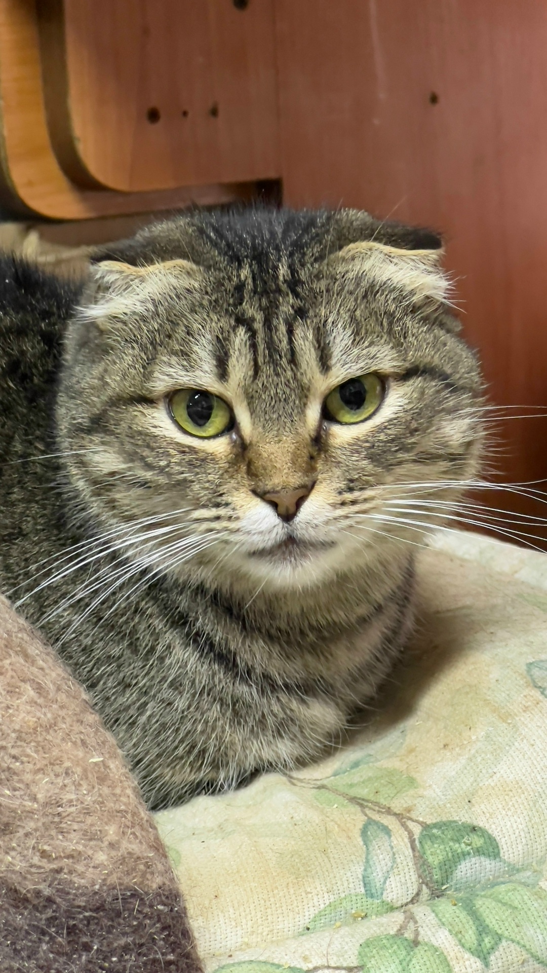 ‼️1: полосатая вислоушка - выкинули 5 месяцев назад на трассе Симферополь/Джанкой , нашли в очень плачевном состоянии и истощенную 😰 долго лечили и приучали к вере людям 🙏🏼 Сейчас очень ласковая , приучена к лотку , привита и готова подарить свою любовь маме или папе 💚 примерный возраст 2 года