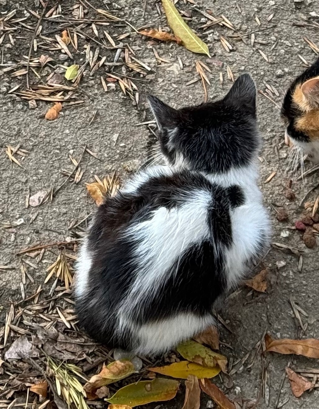 Два белых котенка, месяца по 1.5, тоже живут под открытым небом, мама пропала...