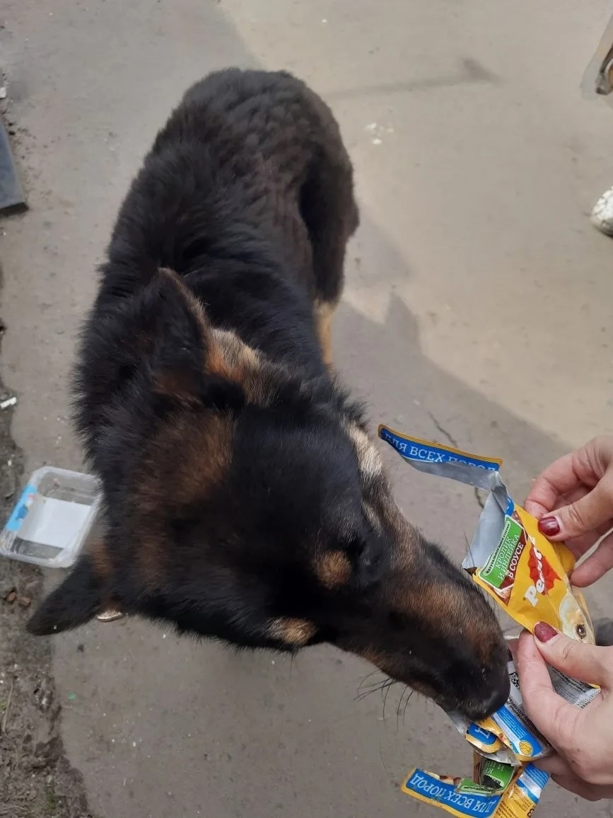 В д. Добрунь второй день бегает собака, кобель. По виду немецкая овчарка, подросток. Добродушный, подходит к рукам.