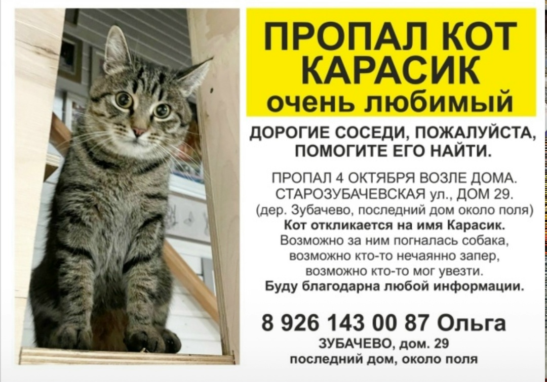 Прошу помощи в поиске Котика. Потерялся 4 окт, г. Сергиев Посад, Ул. Старозубачевская, дом 29.
