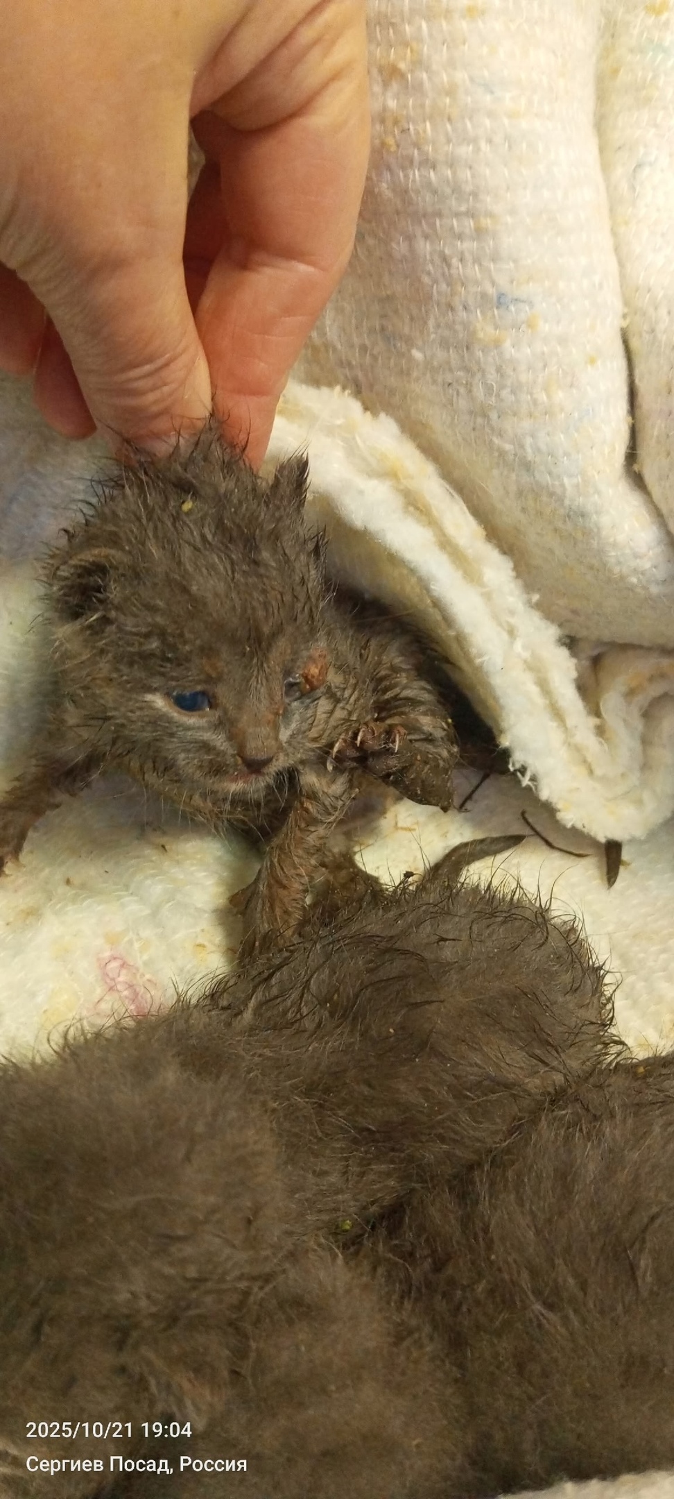 Мкр.углич. ПОМОГИТЕ, нашли в траве трех котях, кто то выкинул. Глаза больные и видимо только открыли, без кошки не справимся..