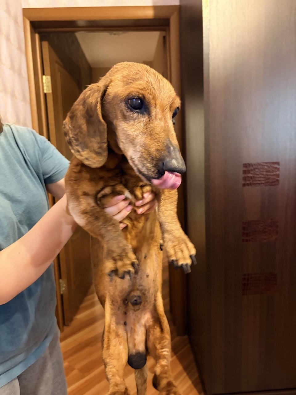 Очень худой, рана на правом бедре. В ветеринарной клинике сказали что пёсик старенький, более 10 лет. Пока его придержали. Может кто-нибудь узнает. Если кто-то узнал собаку пишите в личку, или звоните: +79261685331