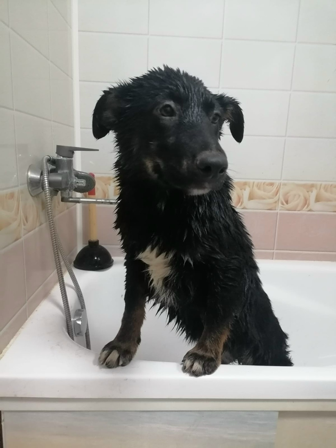 МО, Фрязино. К дачам(район Богослово) прибился щенок, девочка 4- 5 мес. Очень ласковая и очень умная. Тянется к человеку. Сейчас находится на временной передержке. Но нужно как можно скорее найти дом. 8(905)730-03-40 Анна