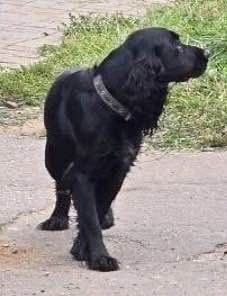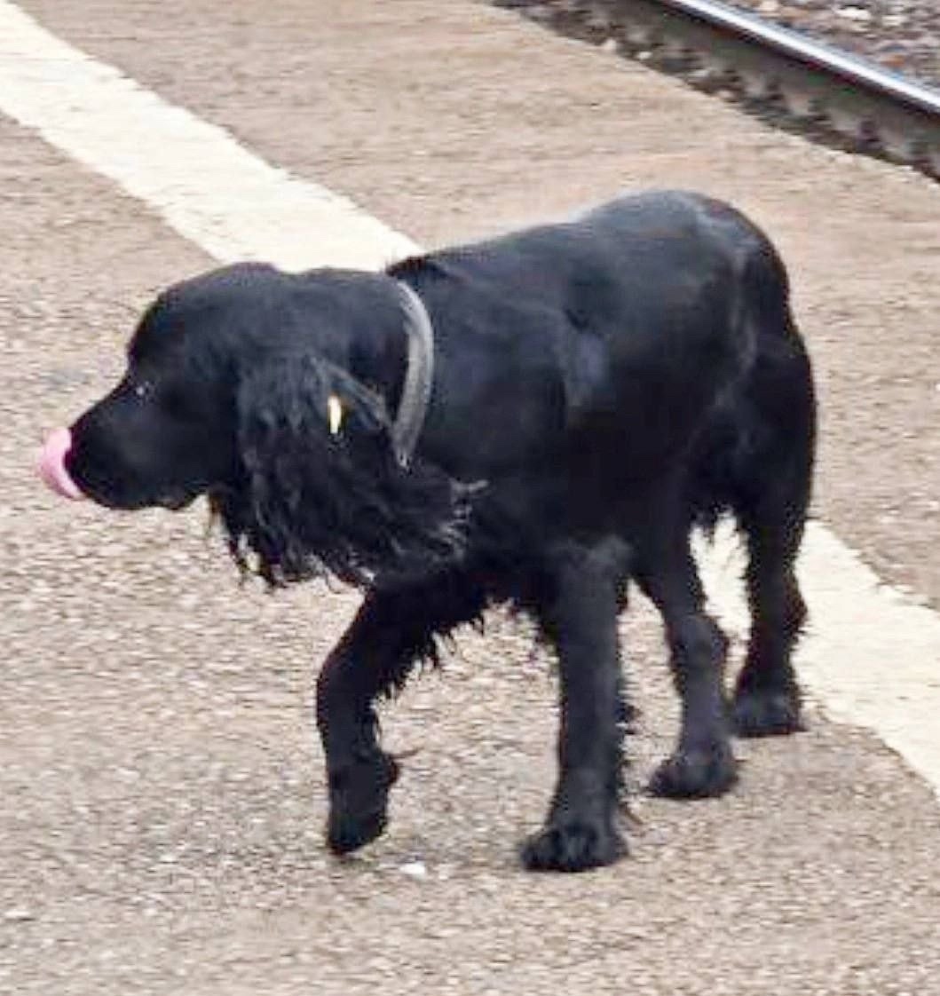 Чёрного окраса, в кожаном ошейнике. Скулит, возможно потерялся.