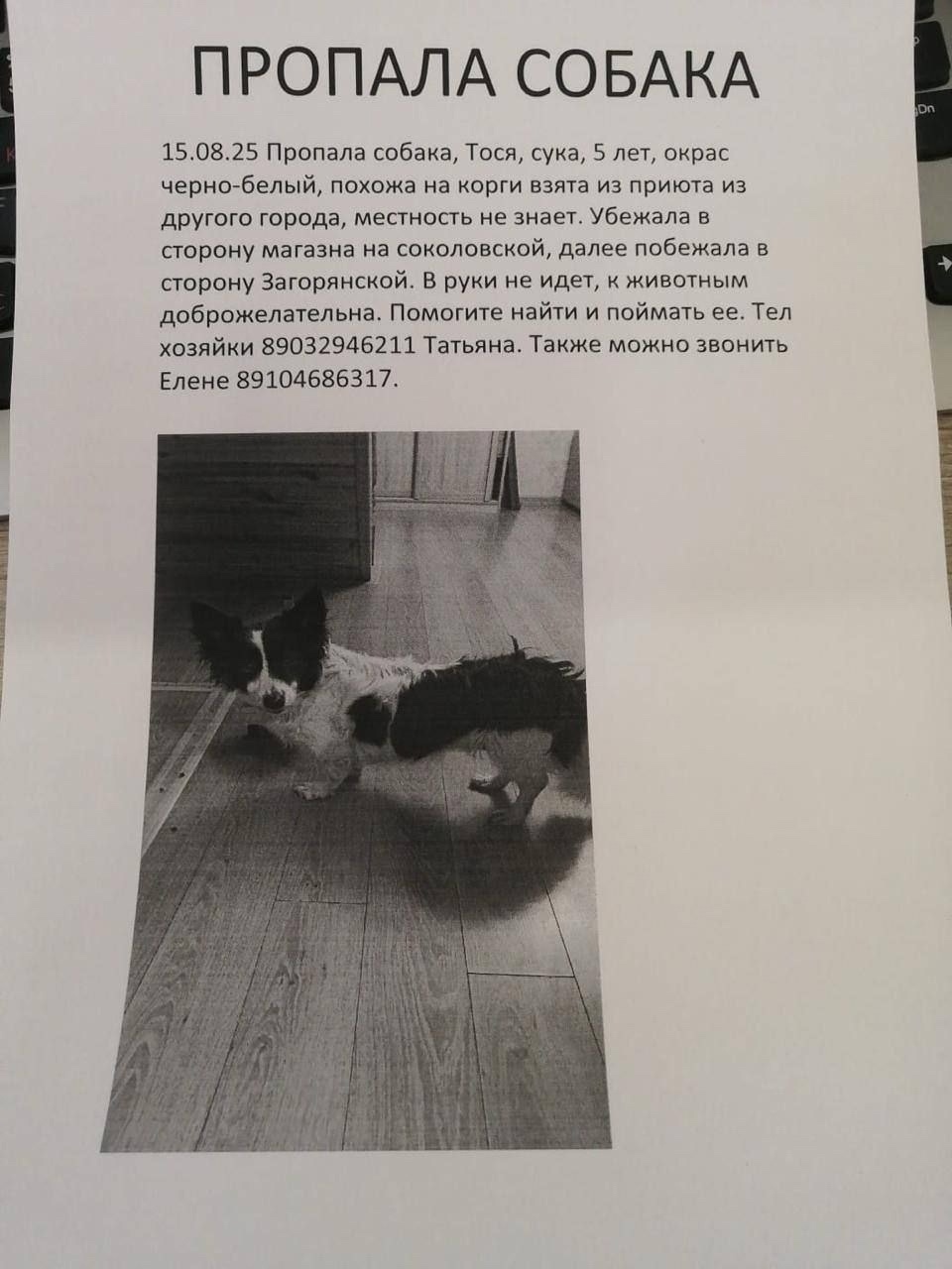 Была замечена со стороны магазина Соколовский-бежала в сторону Загорянки (Щёлковский район)