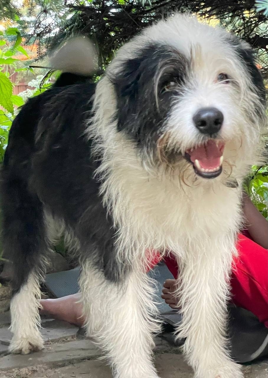 Кобель, метис терьера, кличка Бим, окрас черно- белый, контактный. Был в двух ошейниках ( обычный и от паразитов) с адресником.