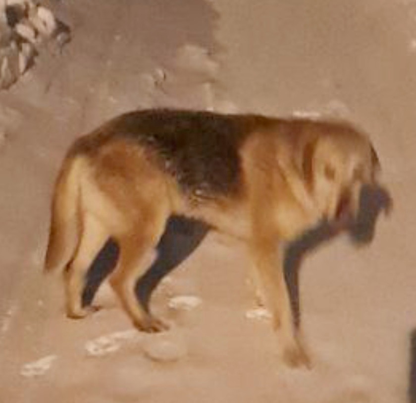 08.03. возрастная, чепрачного окраса, без ошейника.