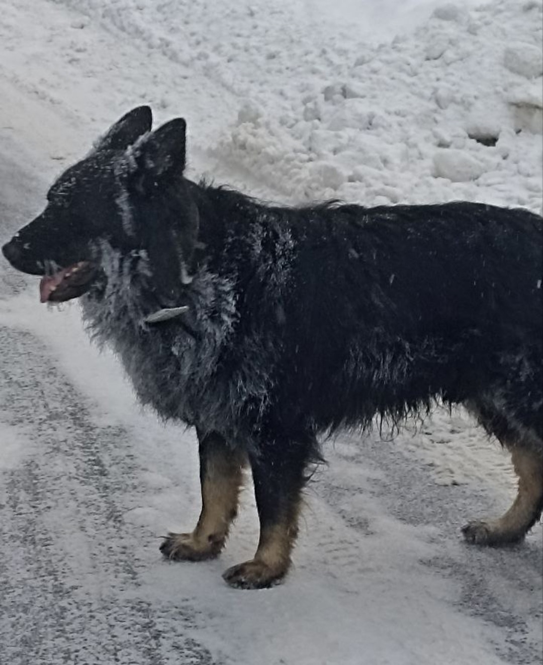 16.- 17. Пол не известен, длинношерстная, окрас чёрный с подпалинами, в ошейнике.