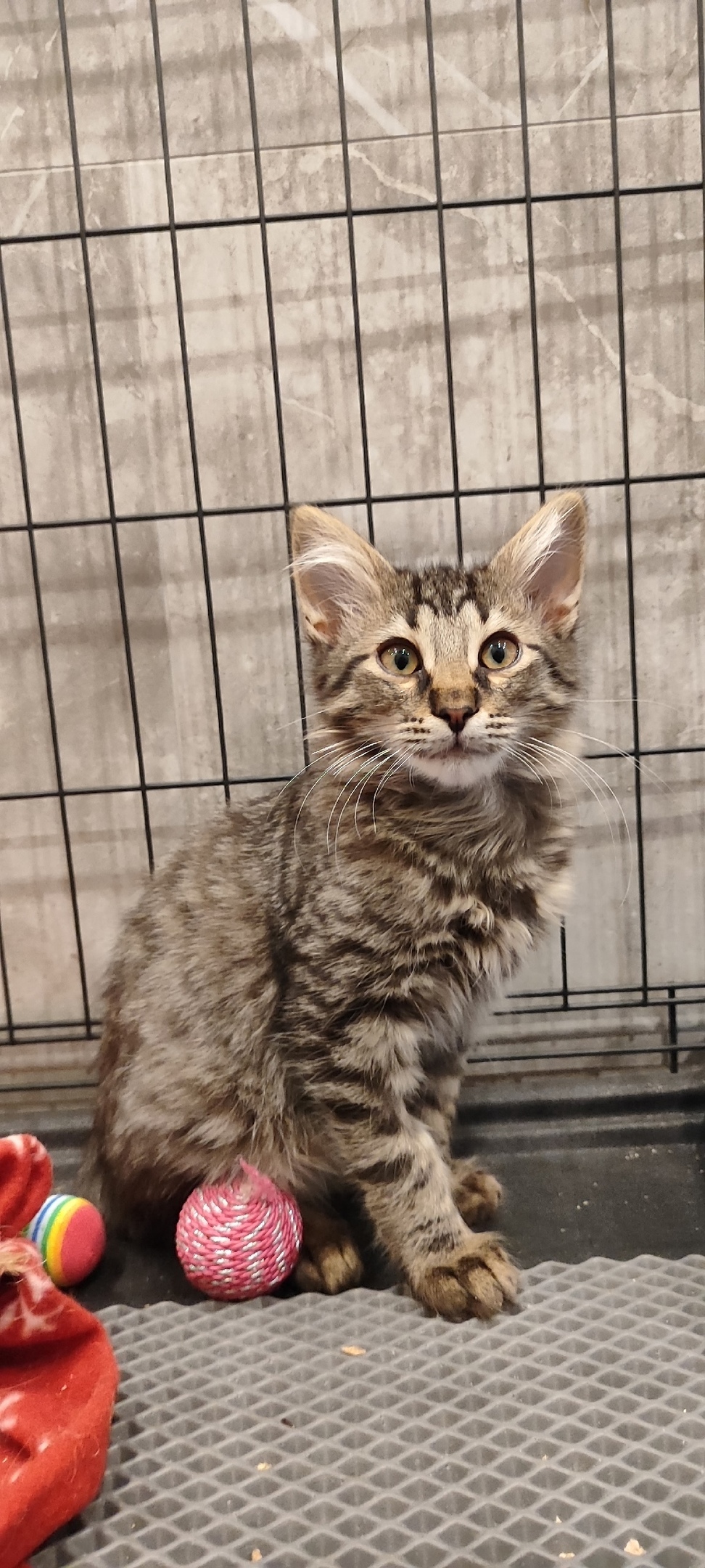 Им примерно 4,5 месяца. Их нашли под плитами у магазина — голодными и напуганными. Маму поймали и простерилизовали. Малыши обработаны от паразитов, приучены к лотку и привиты по возрасту. В настоящий момент выглядят здоровыми: хорошо едят, активны и общительны в пределах квартиры.
