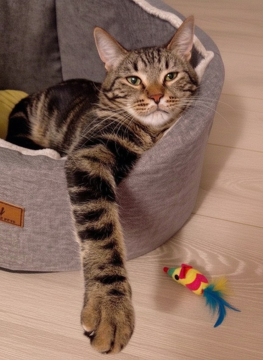 Конечно же, он приучен к лотку с наполнителем и знает все виды когтеточек.