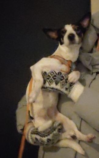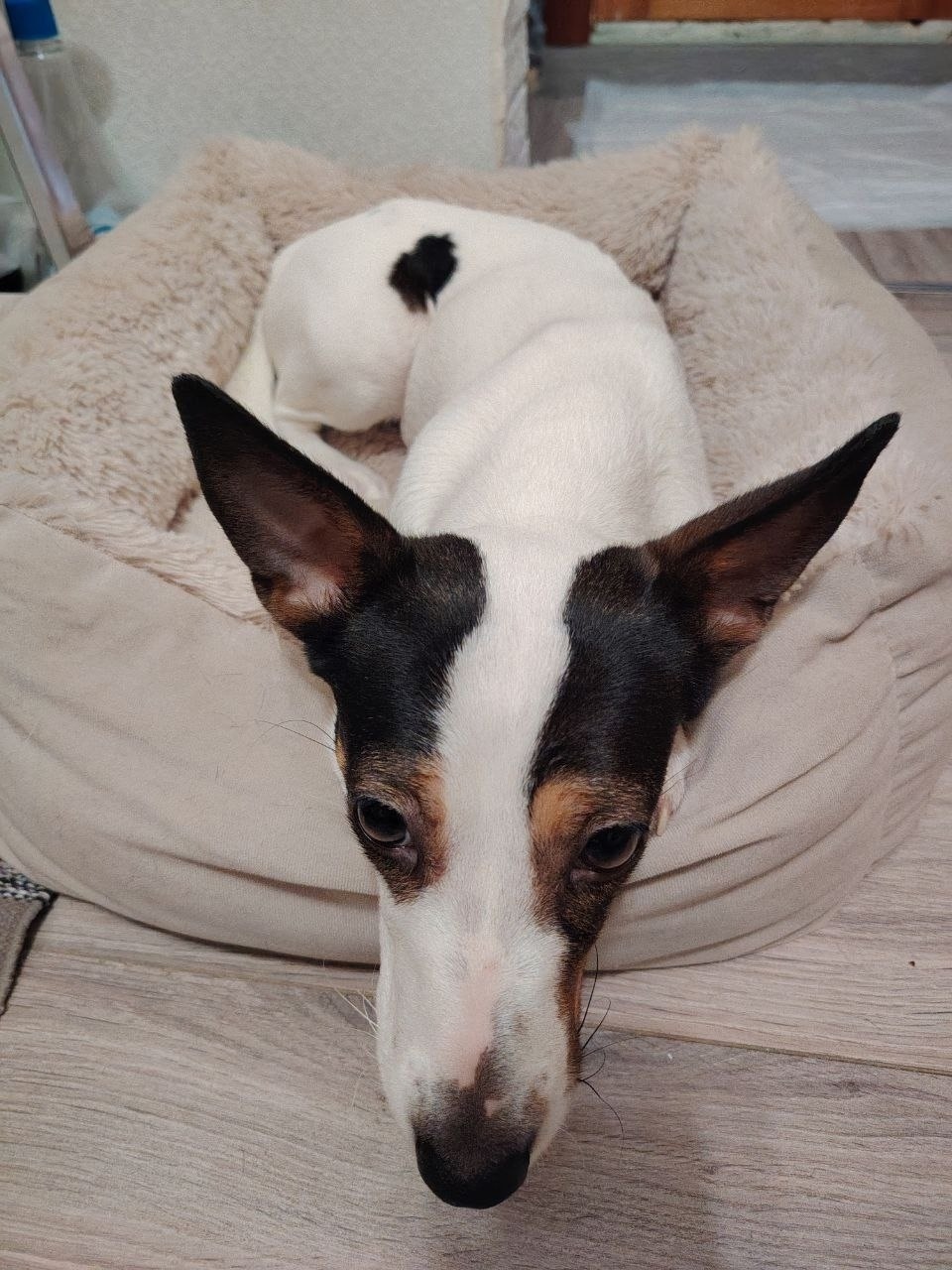 Найдена небольшая собака белого цвета с пятнами (типаж и размер джек рассел терьер), 8 января, в 12 районе около леса. Собака находилась на улице двое суток с 7 января, на ней были шлейка и поводок, что наводит на мысли, что она убежала. Очень надеемся, что её ищут!