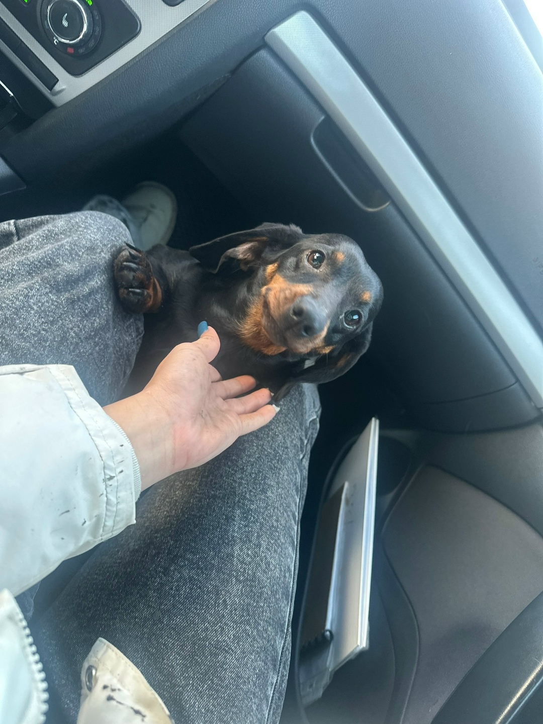 Такса, девочка предположительно сломана передняя лапа
