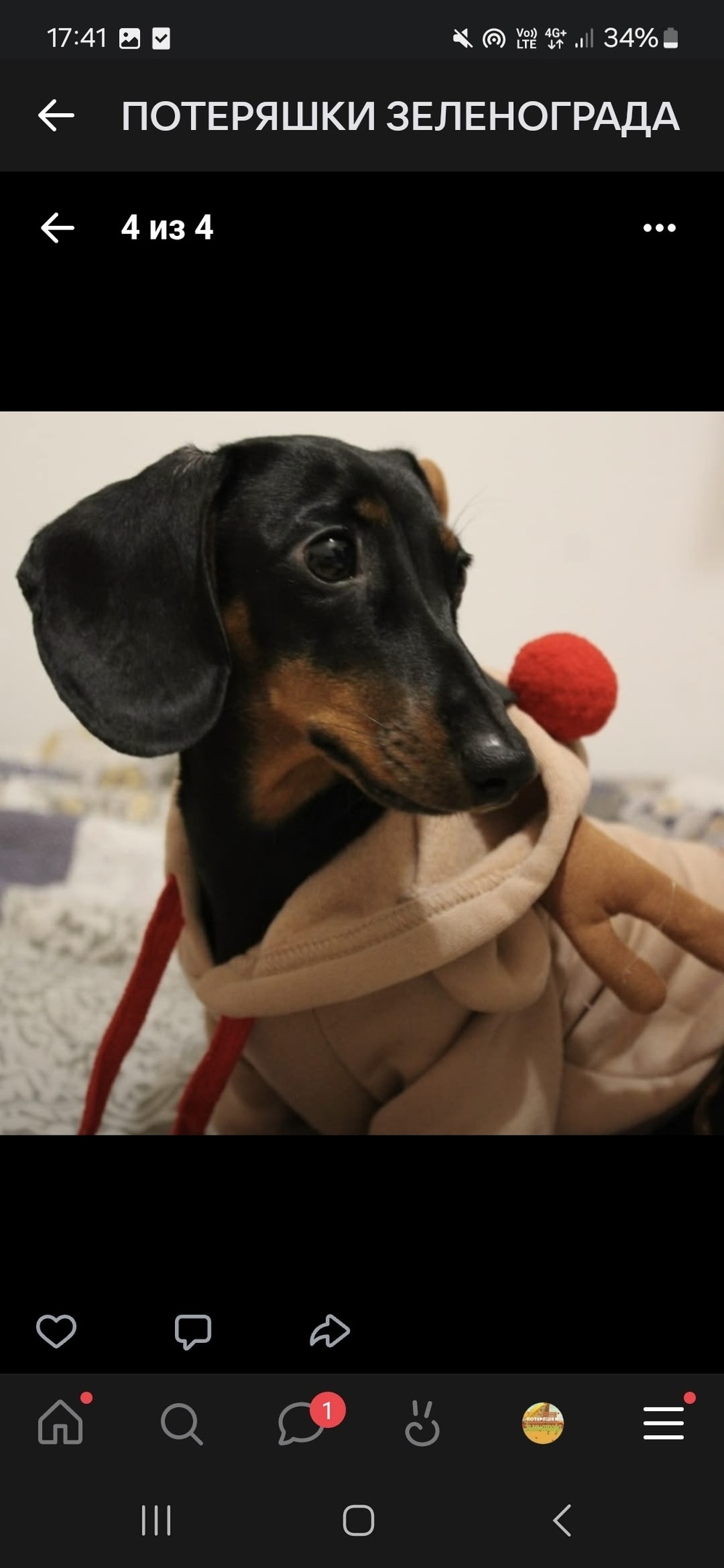 ПРОПАЛА СОБАКА. 24.11.25. Карликовая такса. Зовут Несси. 16 микрорайон Зеленограда. На ней была кофта, как на фото. Просьба всем, кто знает о местонахождении, позвонить по телефону 8 999 896 86 19 за денежное вознаграждение (WhatsApp/Telegram). Или написать мне в личные сообщения 🙏