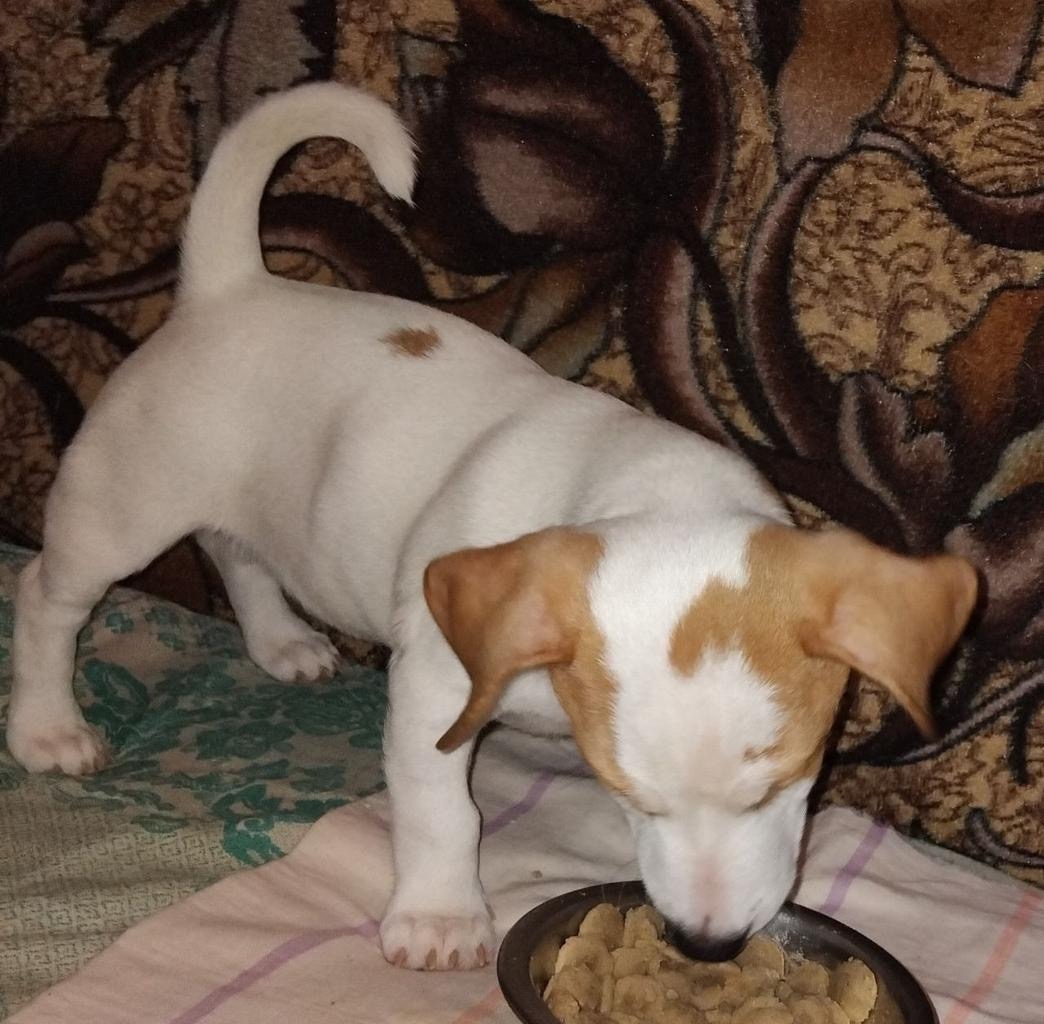 ДЖЕК РАССЕЛ, Мальчик, 5 месяцев, окрас основной белый с рыжими пятнами, клеймо