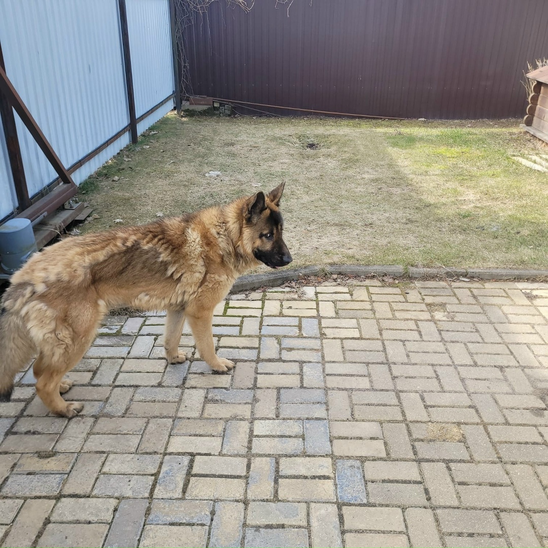Найден кобель (до года) овчарки. Не ухоженный, но со следом ошейника. Временно придержали, но СРОЧНО ищет хозяев!