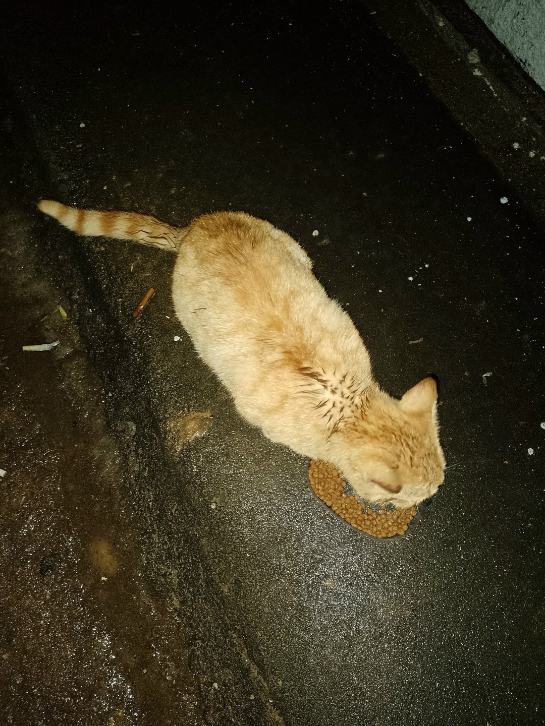 старый город. Ещё полукотенок (или полукошечка). Нос розовый с картинкой. Мокрый. Гладится. Накормила. Может,кто потерял.