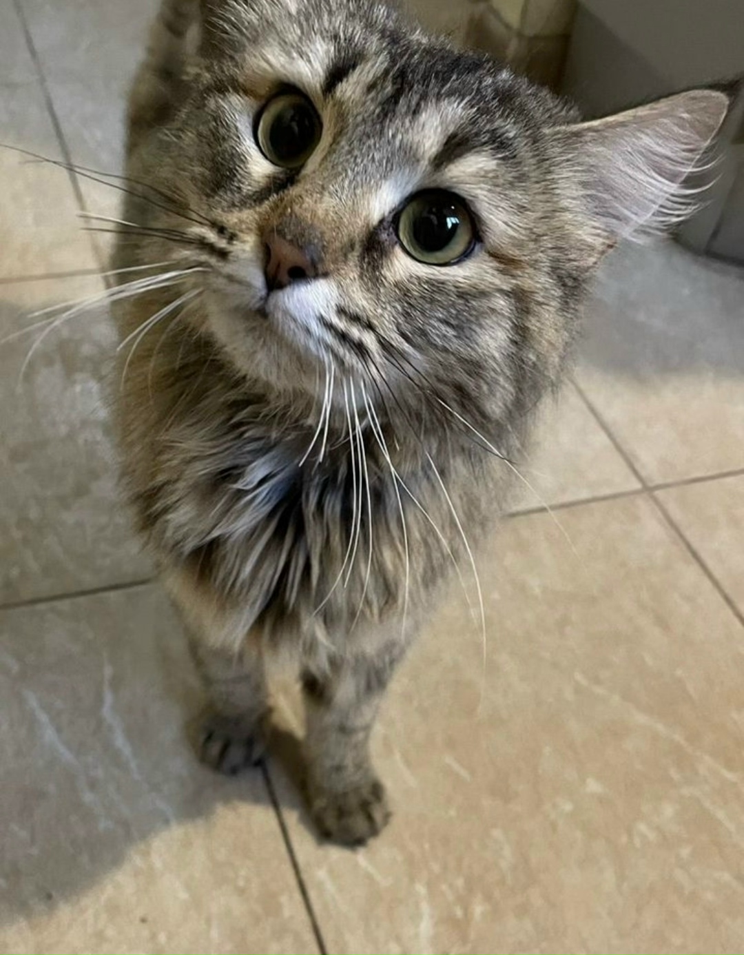 Кошка избитая, изможденная, худая как скелет. Потеряла веру в людей... Нужна социальная реабилитация, отогревание любовью и вкусным кормом в достаточном количестве.