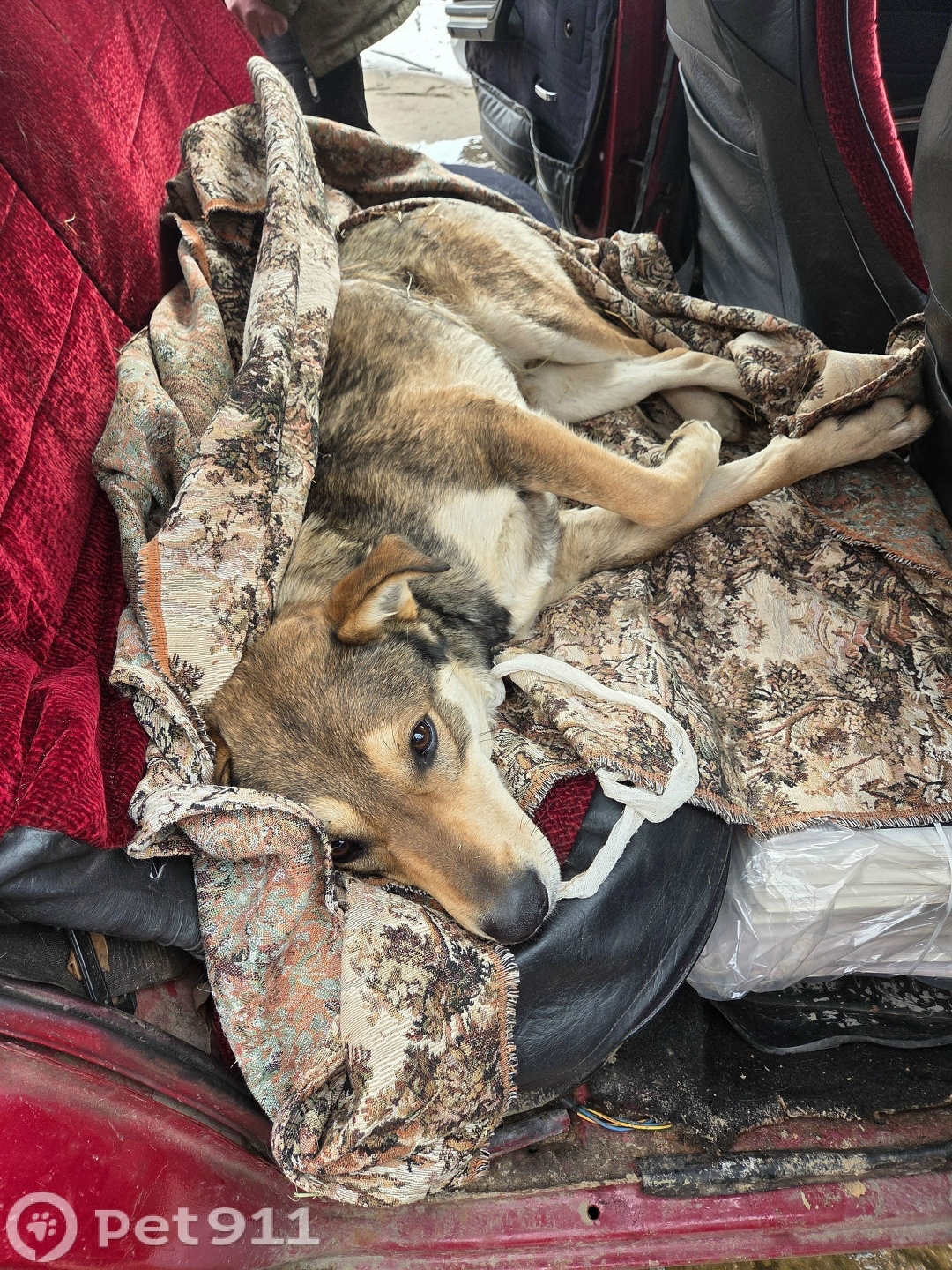 Молодой пёс, возраст год-полтора, вес 30 кг. Был сбит машиной.