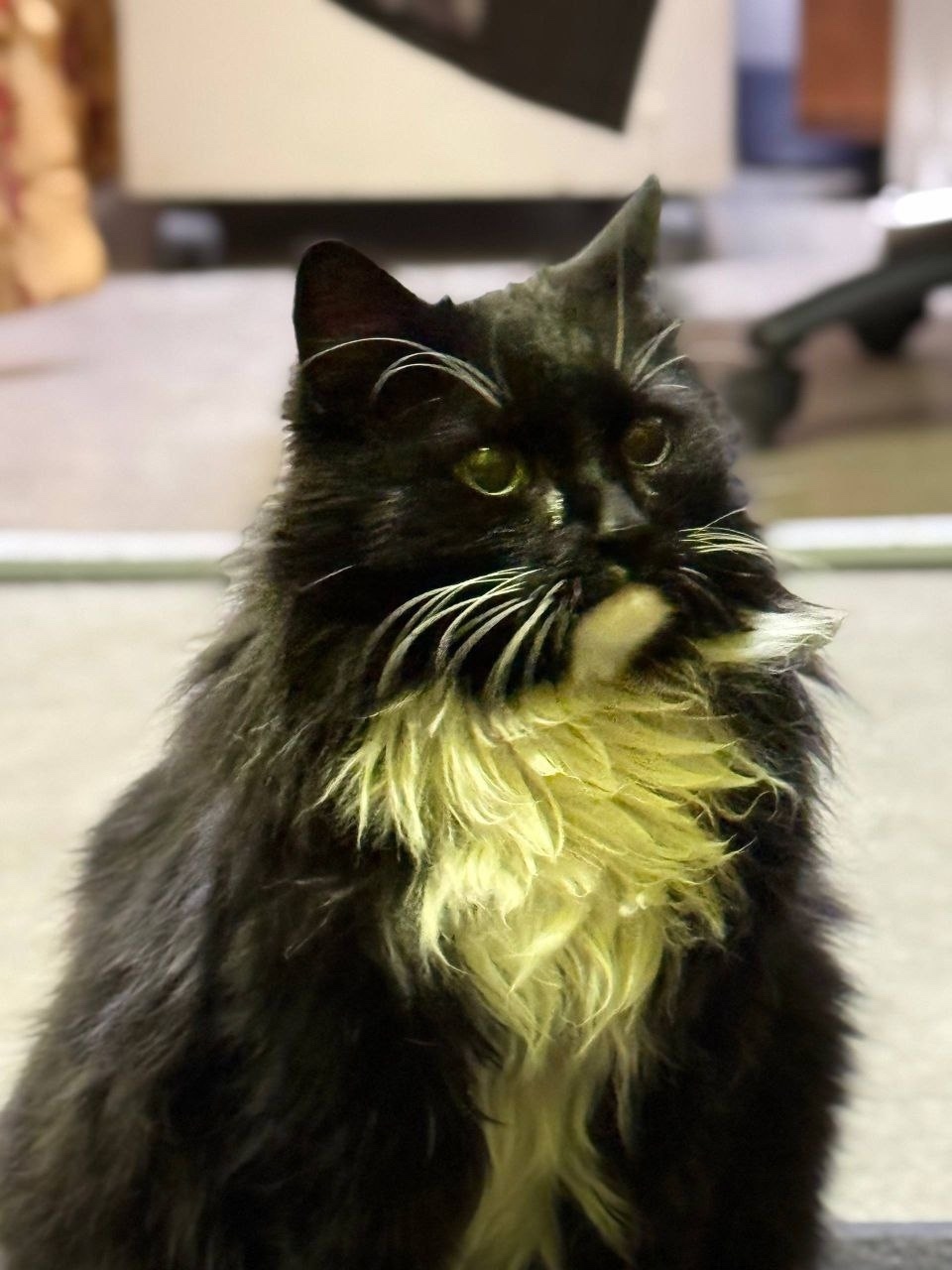 Кошка очень ласковая, контактная, пошла в самодельный лоток, вся в колтунах, зубы хорошие, внешне и по зубам около 1-2 лет.