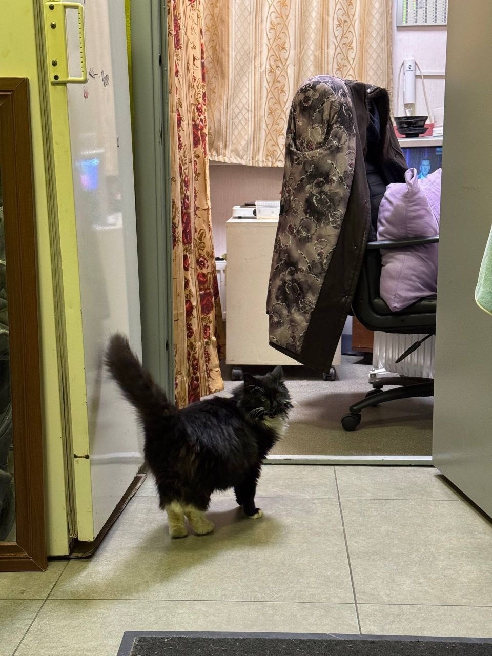 В подъезд подкинули кошку, ее приютила консьержка на 1 день в надежде, что заберут.